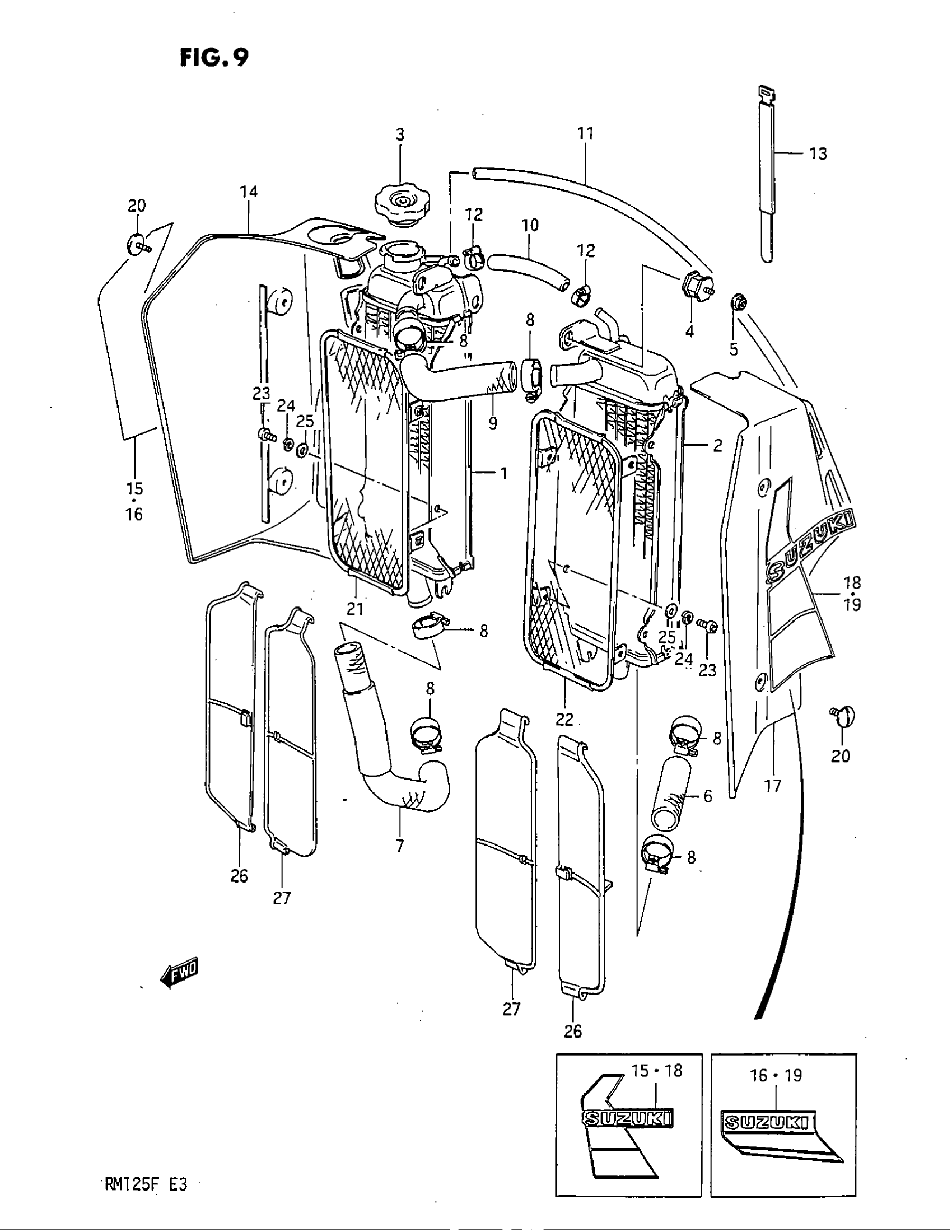 Suzuki RM125 (1985) RADIATOR Diagram