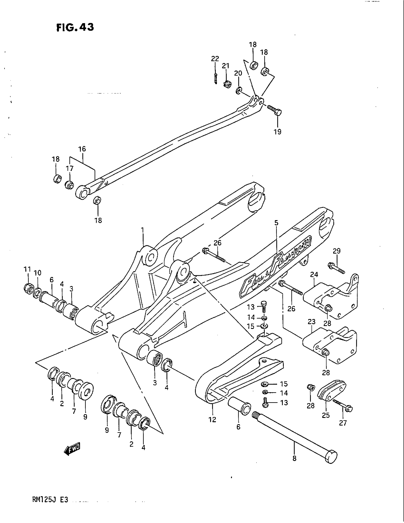 Suzuki RM125 (1988) REAR SWINGING ARM (MODEL G/H) Diagram