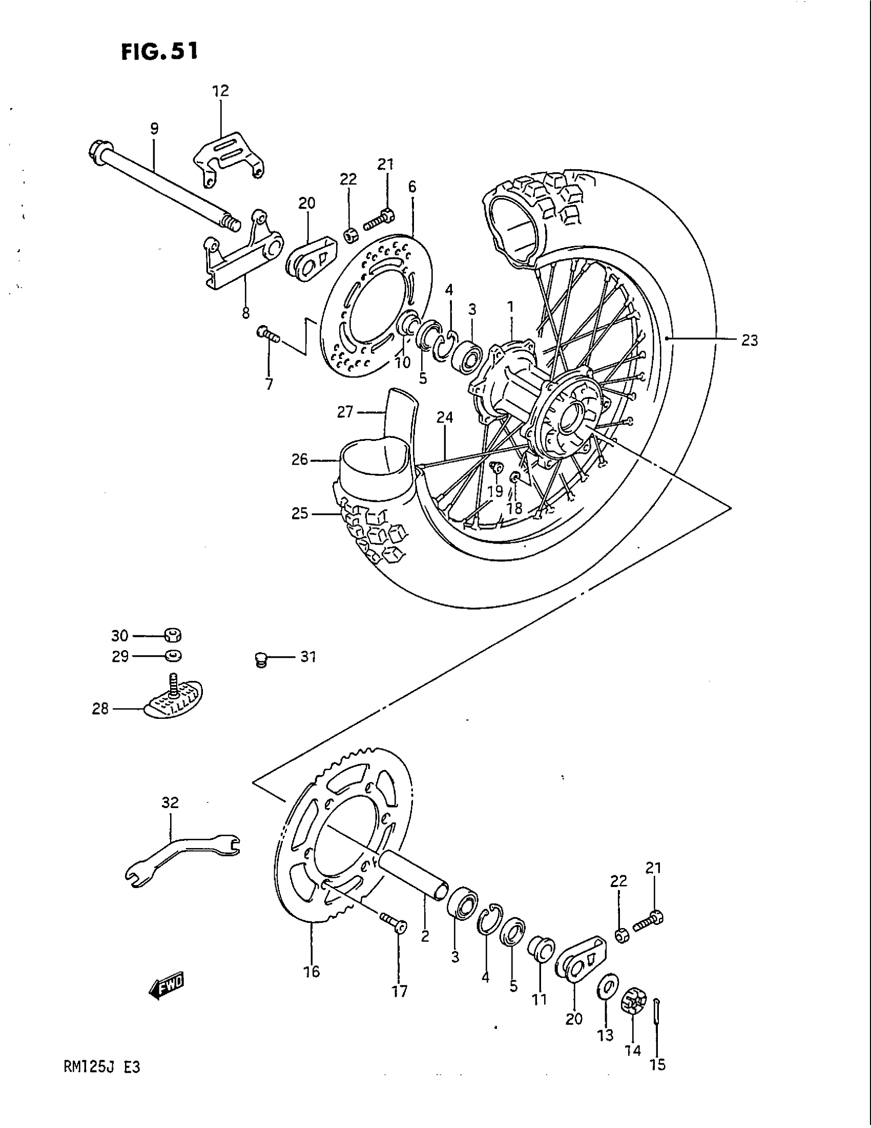 Suzuki RM125 (1988) REAR WHEEL (MODEL J) Diagram