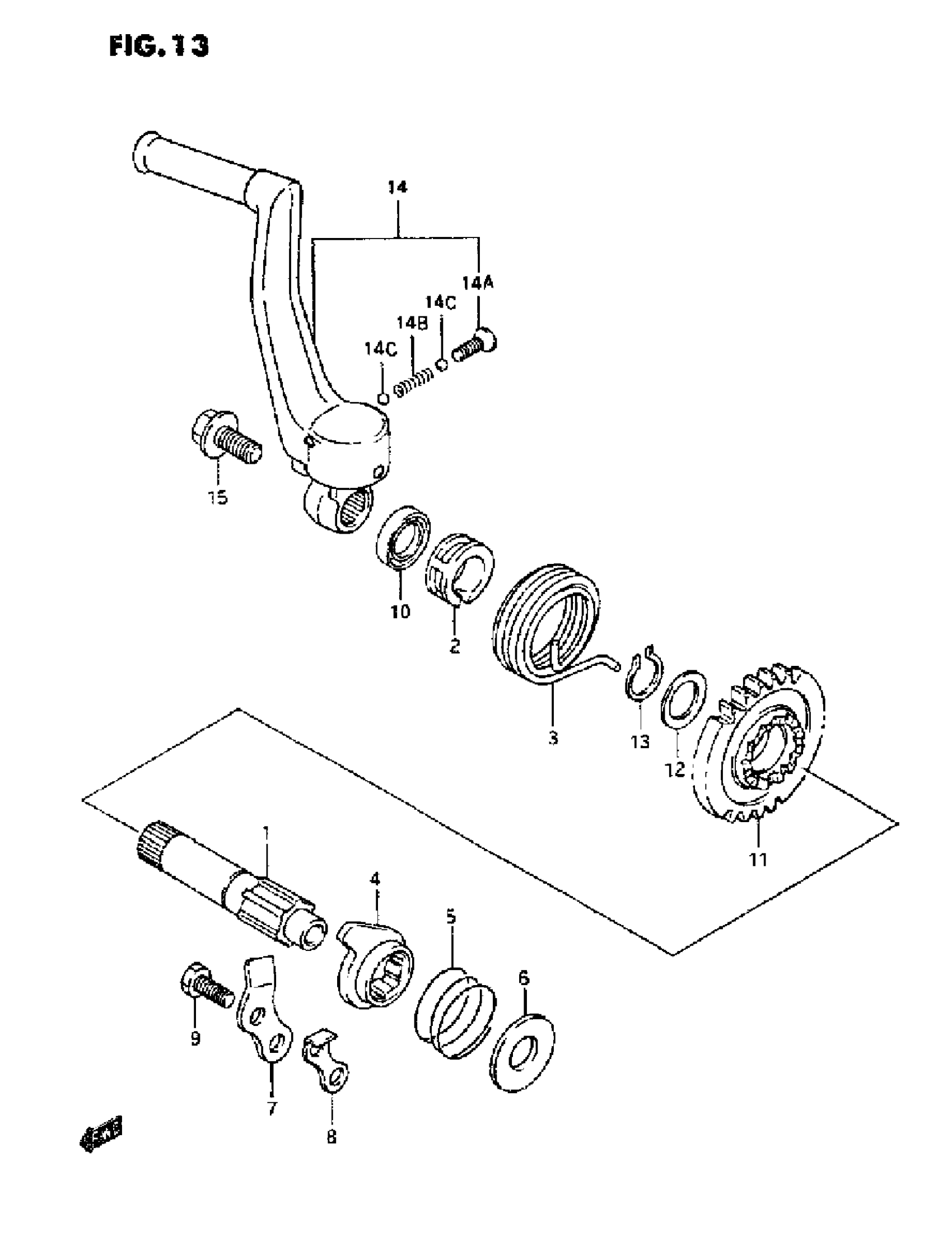 Suzuki RM125 (1995) KICK STARTER Diagram
