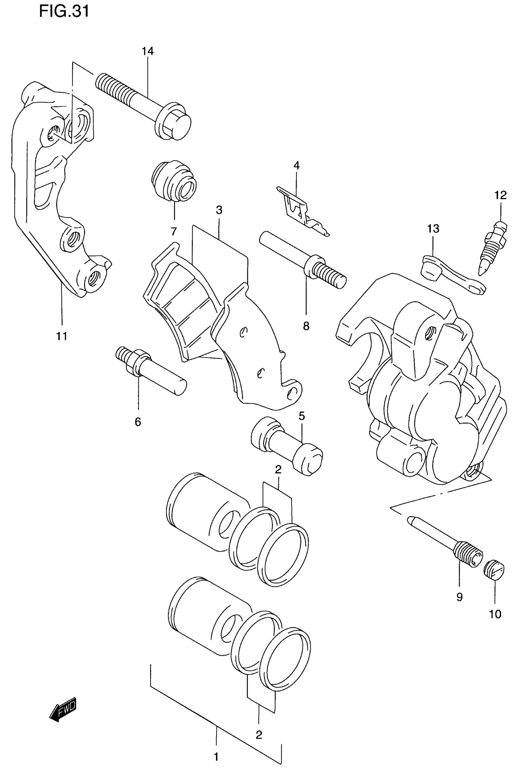 Suzuki RM125 (2000) FRONT CALIPER Diagram