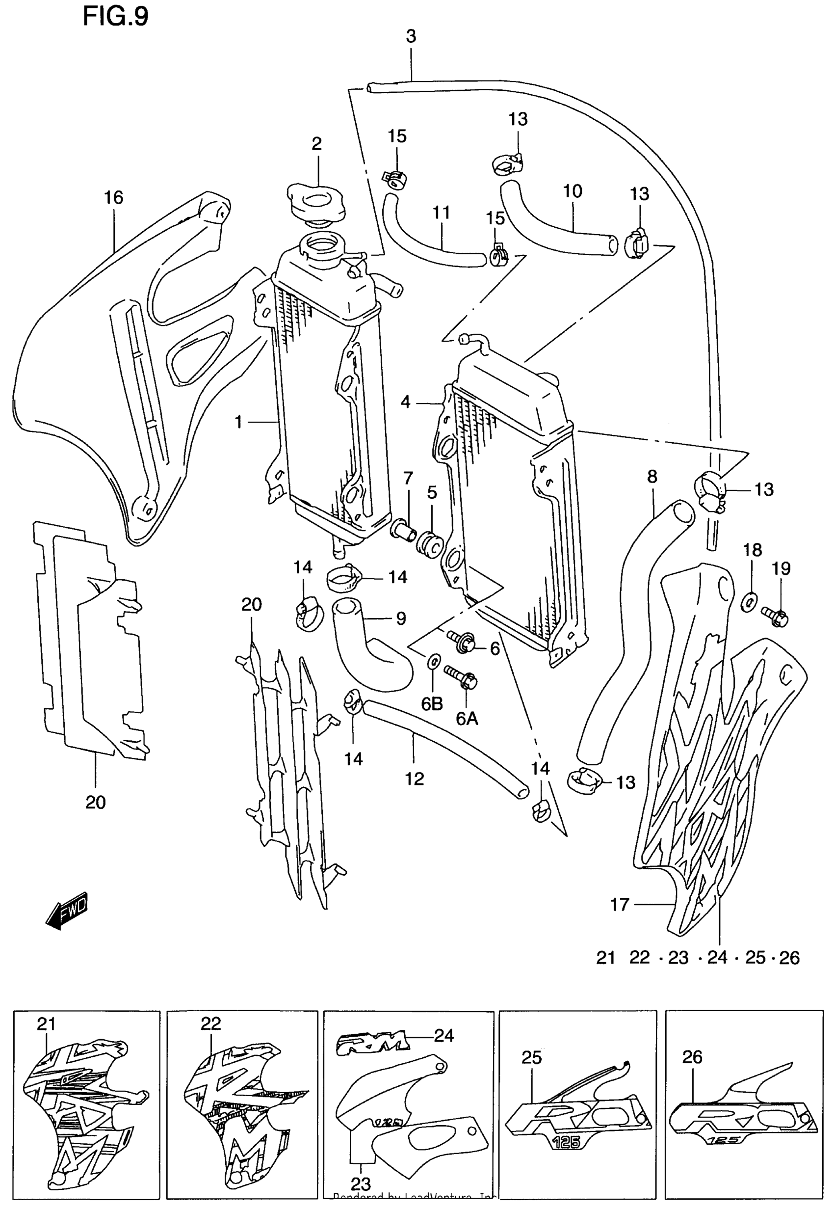 Suzuki RM125 (2000) RADIATOR Diagram