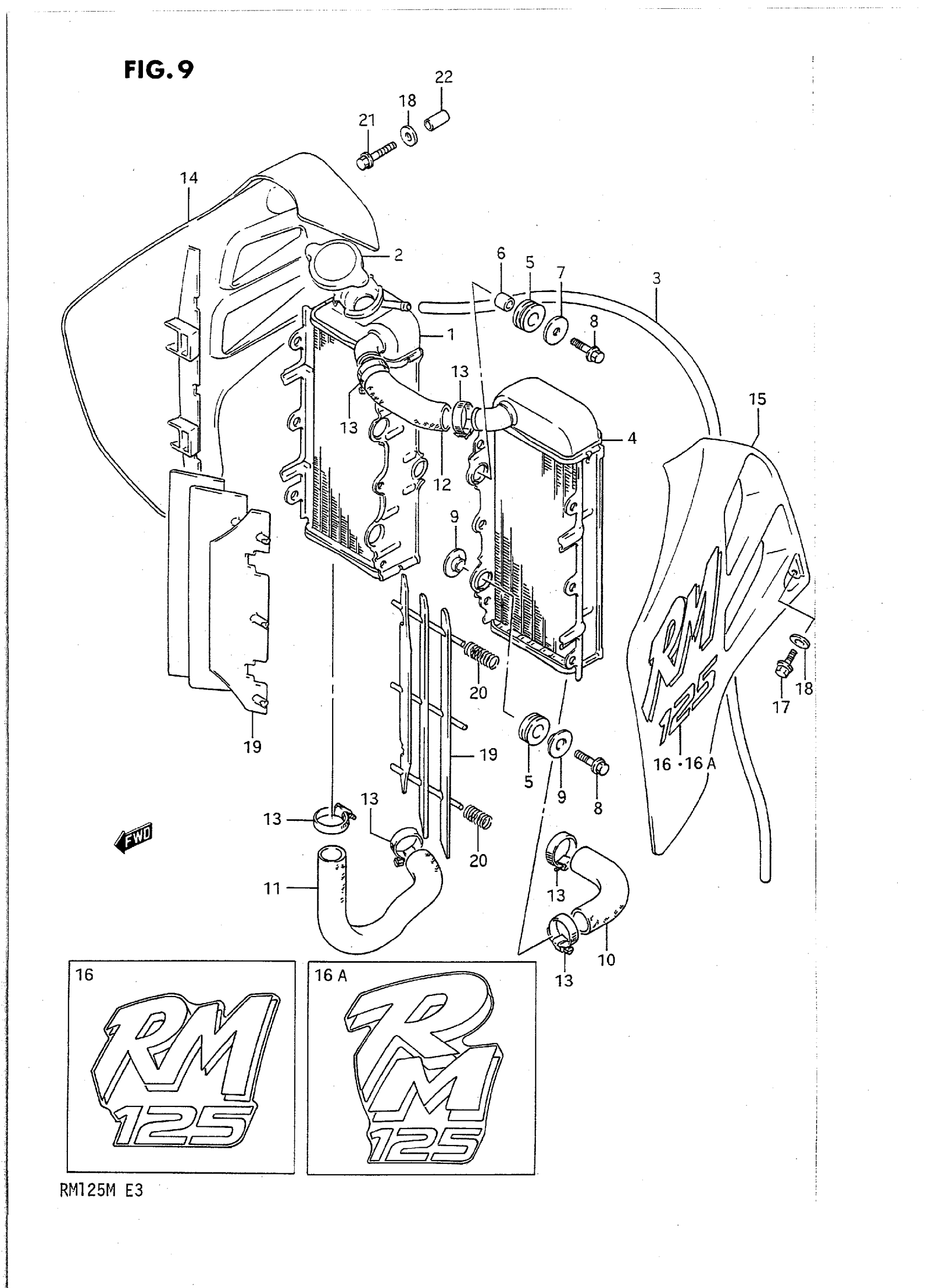 Suzuki RM125M (1991) RADIATOR (MODEL K/L) Diagram