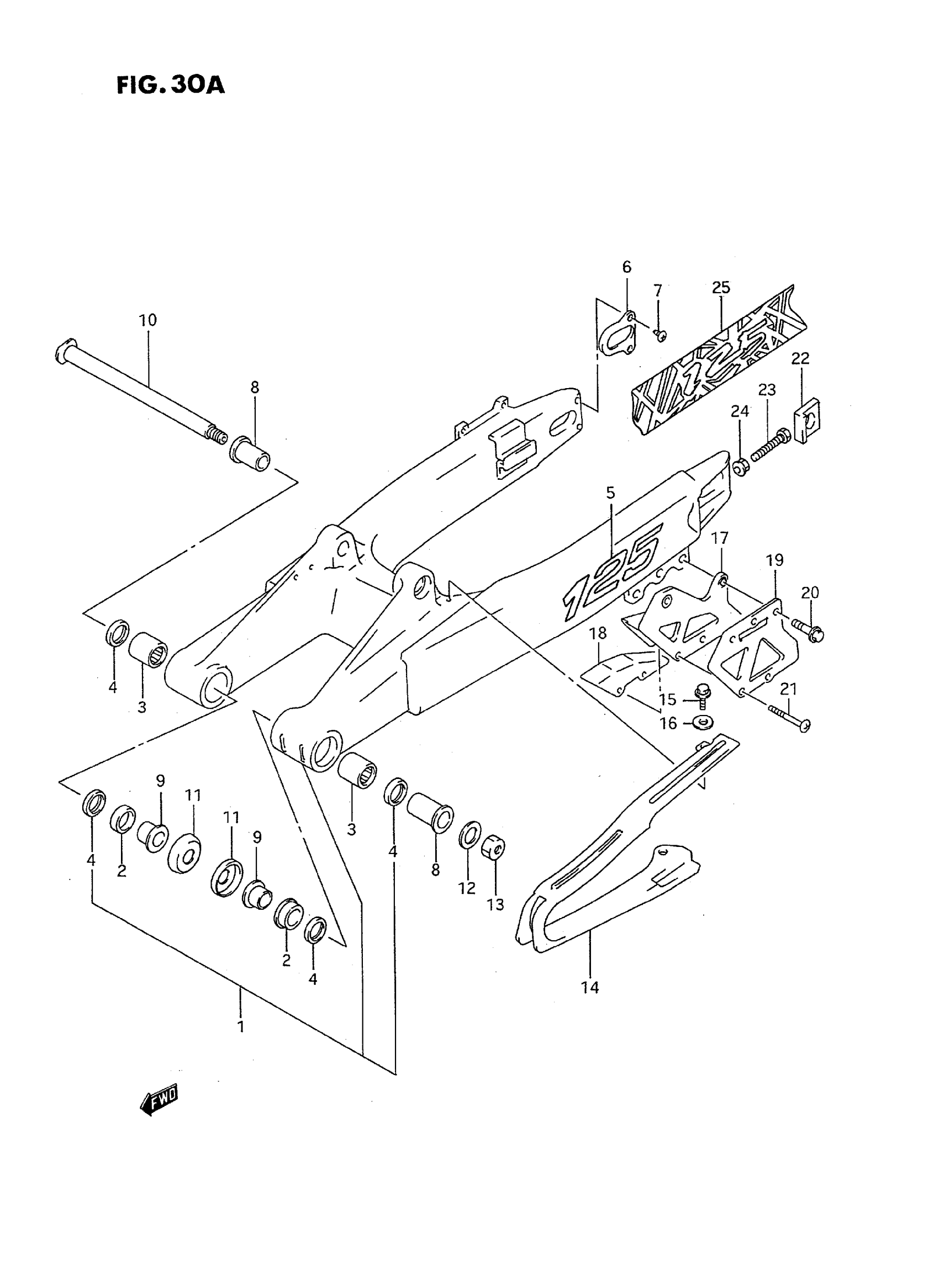 Suzuki RM125S (1995) REAR SWINGING ARM (MODEL P/R/S) Diagram