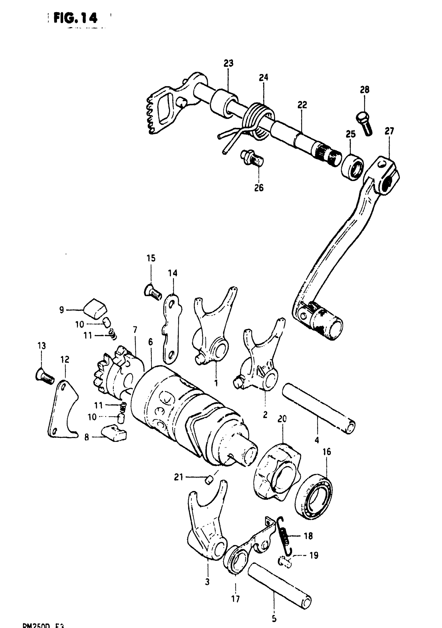Suzuki RM250 (1983) GEAR SHIFTING (MODEL D) Diagram