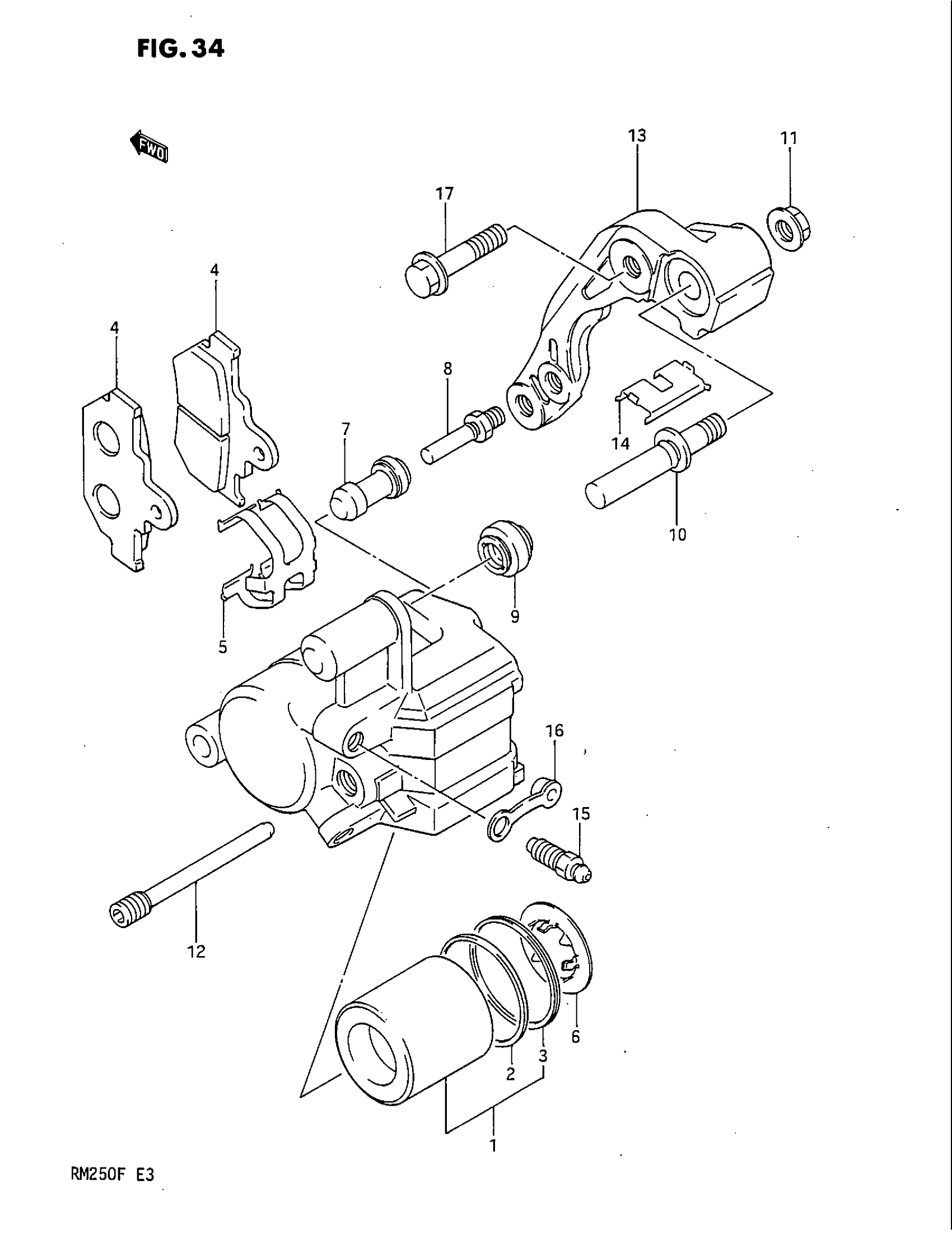 Suzuki RM250 (1985) FRONT CALIPER (MODEL F) Diagram