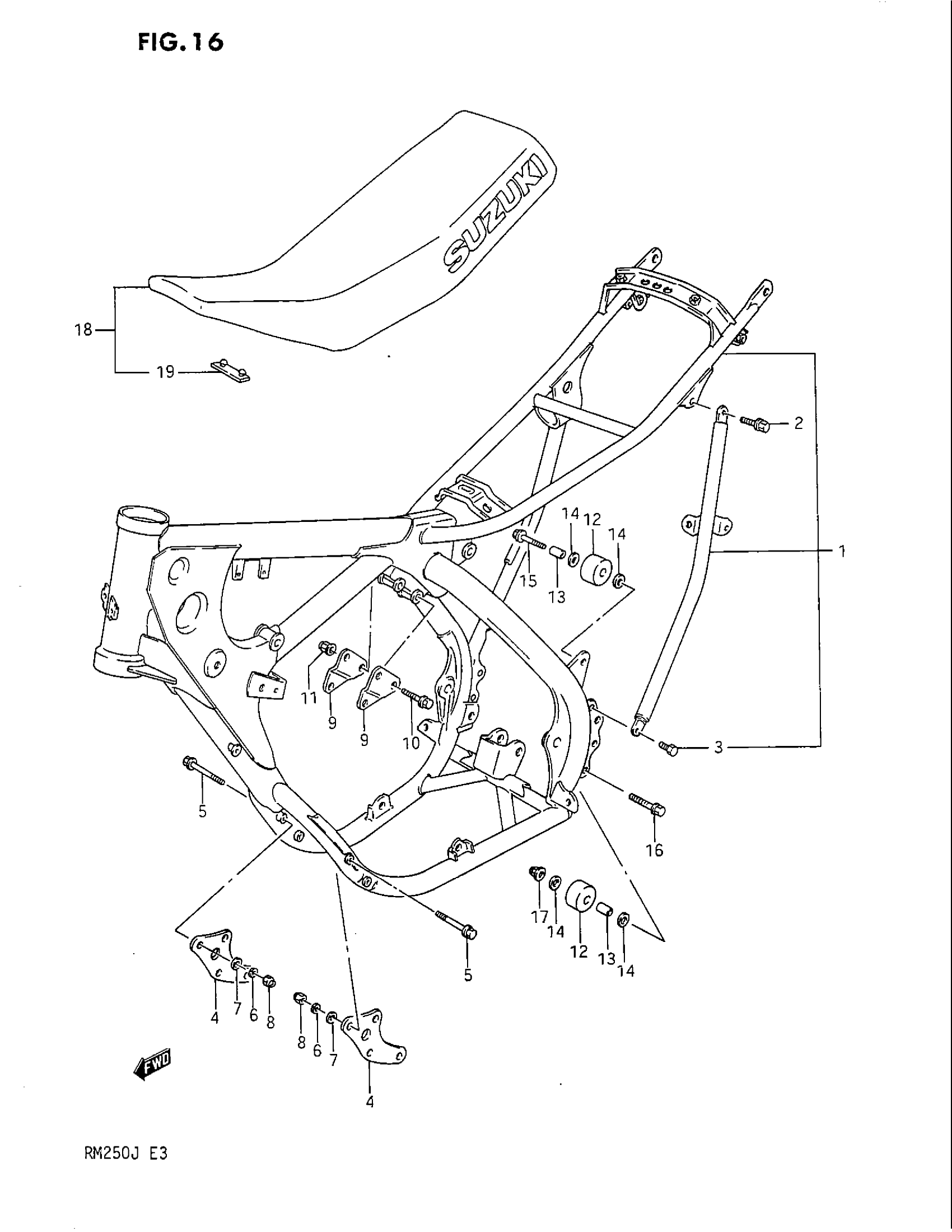 Suzuki RM250 (1988) FRAME - SEAT Diagram
