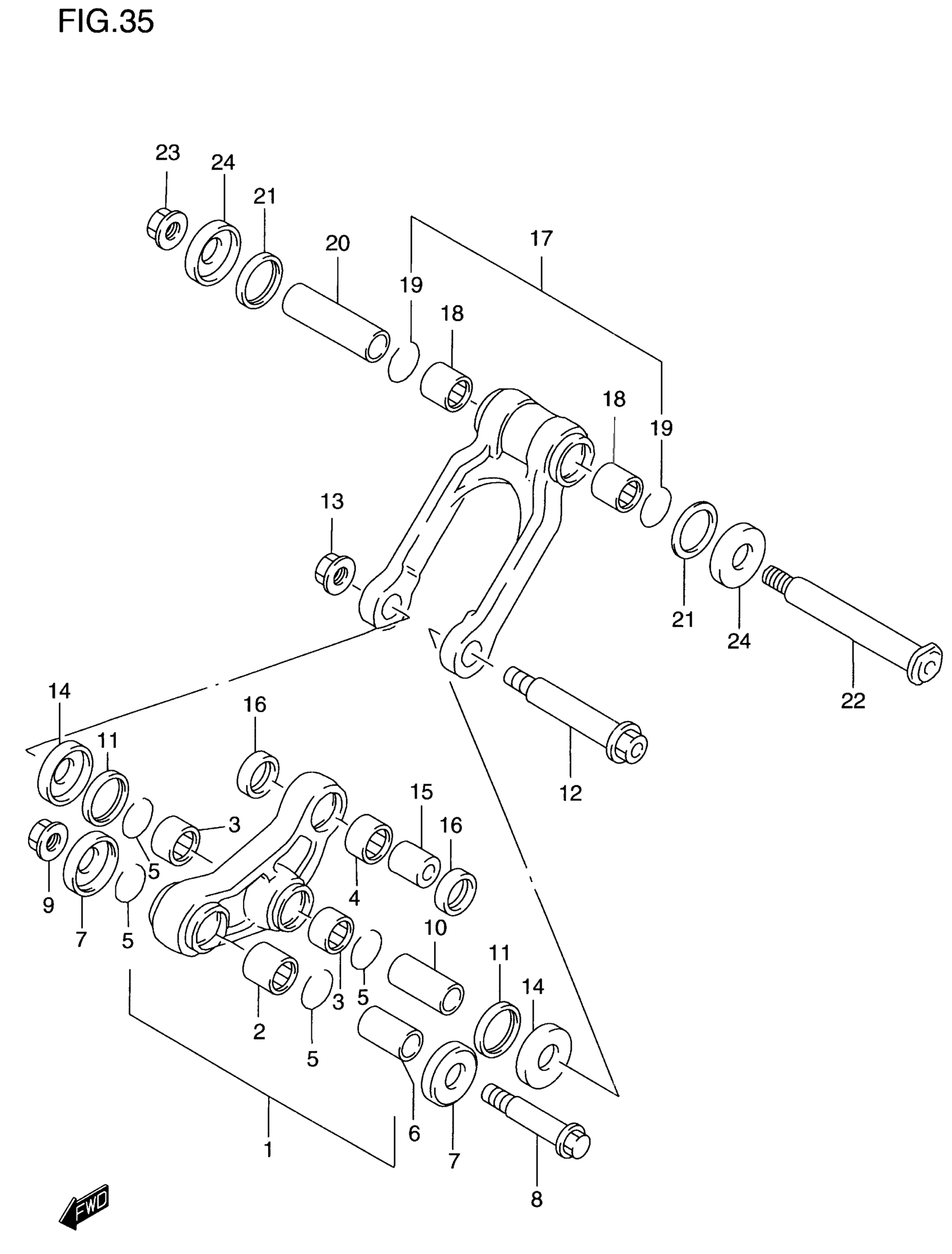 ROD SET, REAR CUSHION LEVER | MODEL V; Includes Item(s) 18 - 19