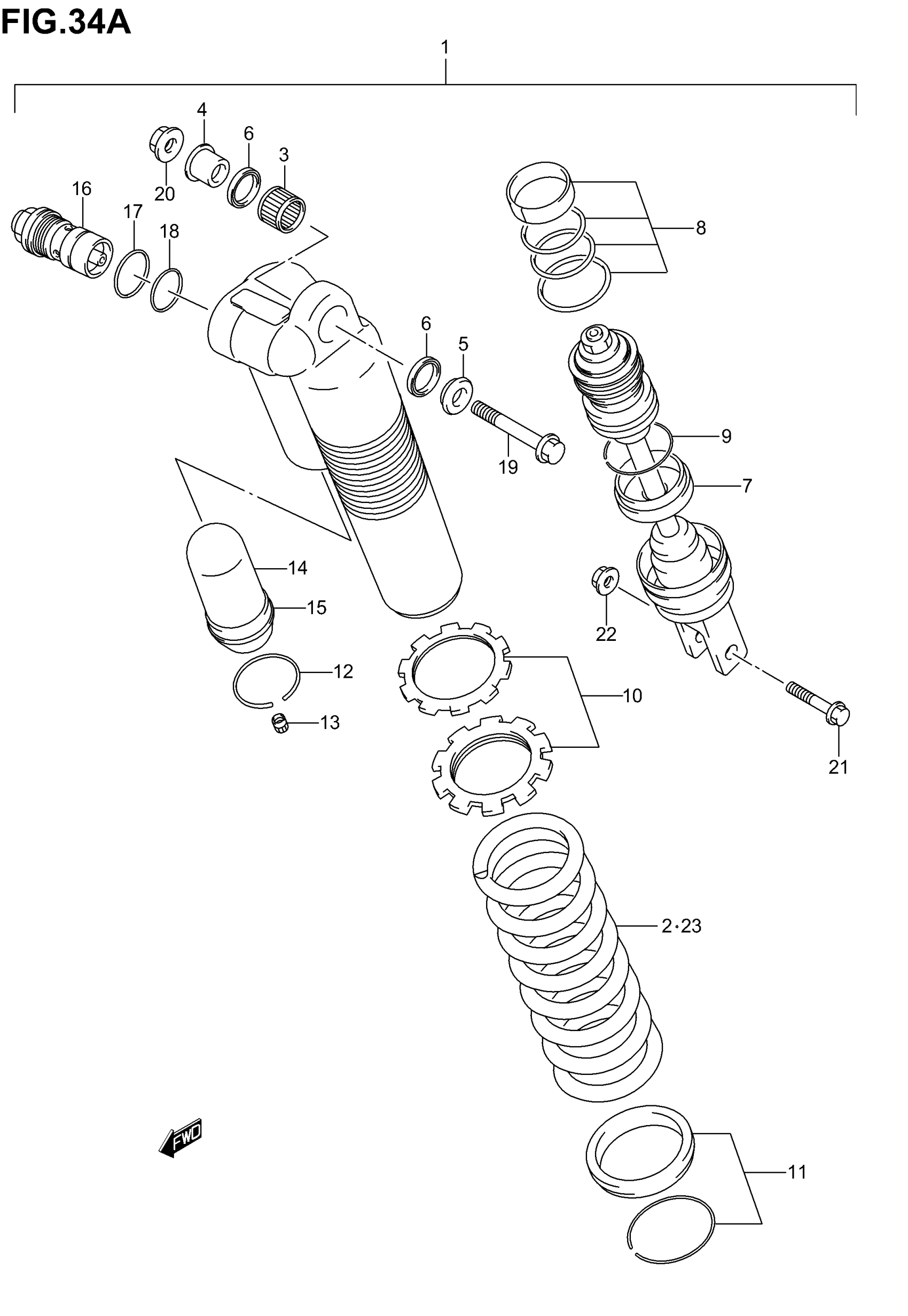 ABSORBER ASSY, RR SHOCK (YELLOW) | E28; Includes Item(s) 2 - 18
