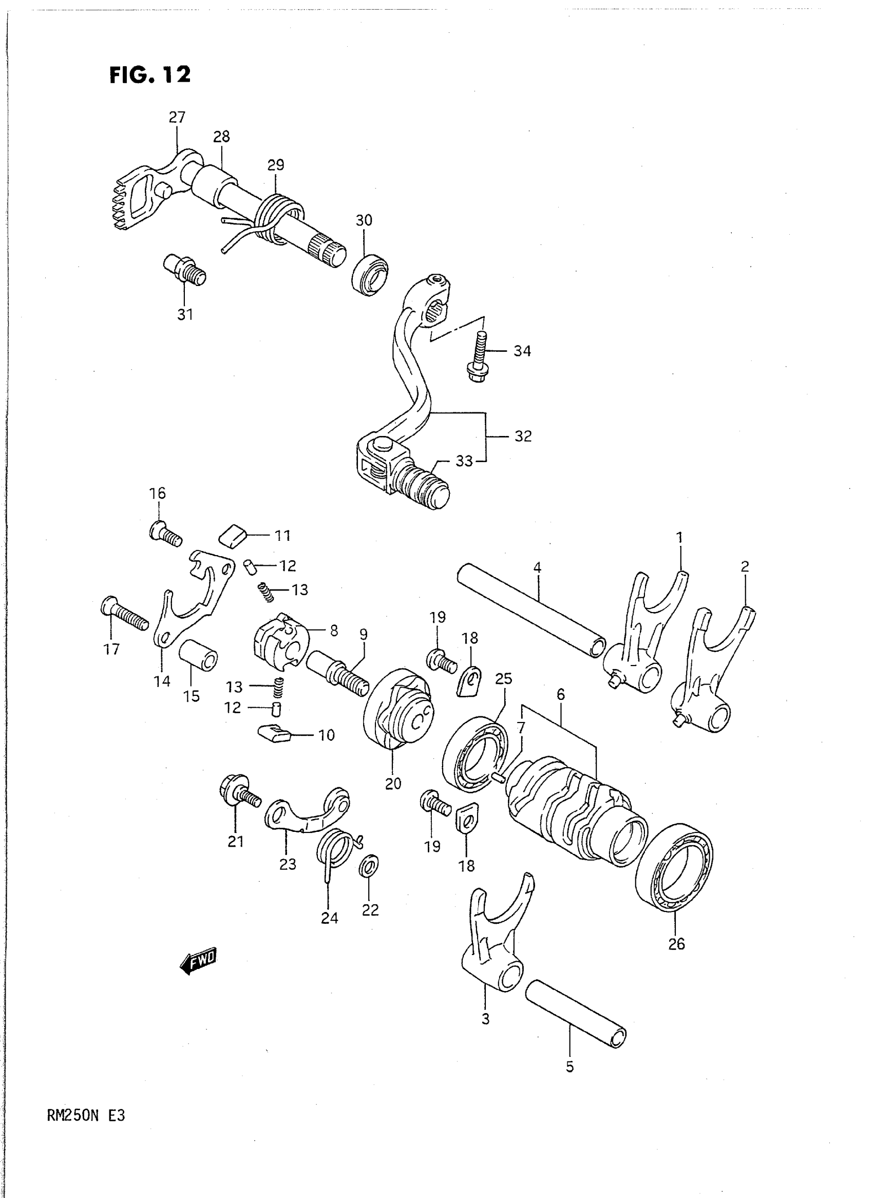 Suzuki RM250N (1992) GEAR SHIFTING Diagram