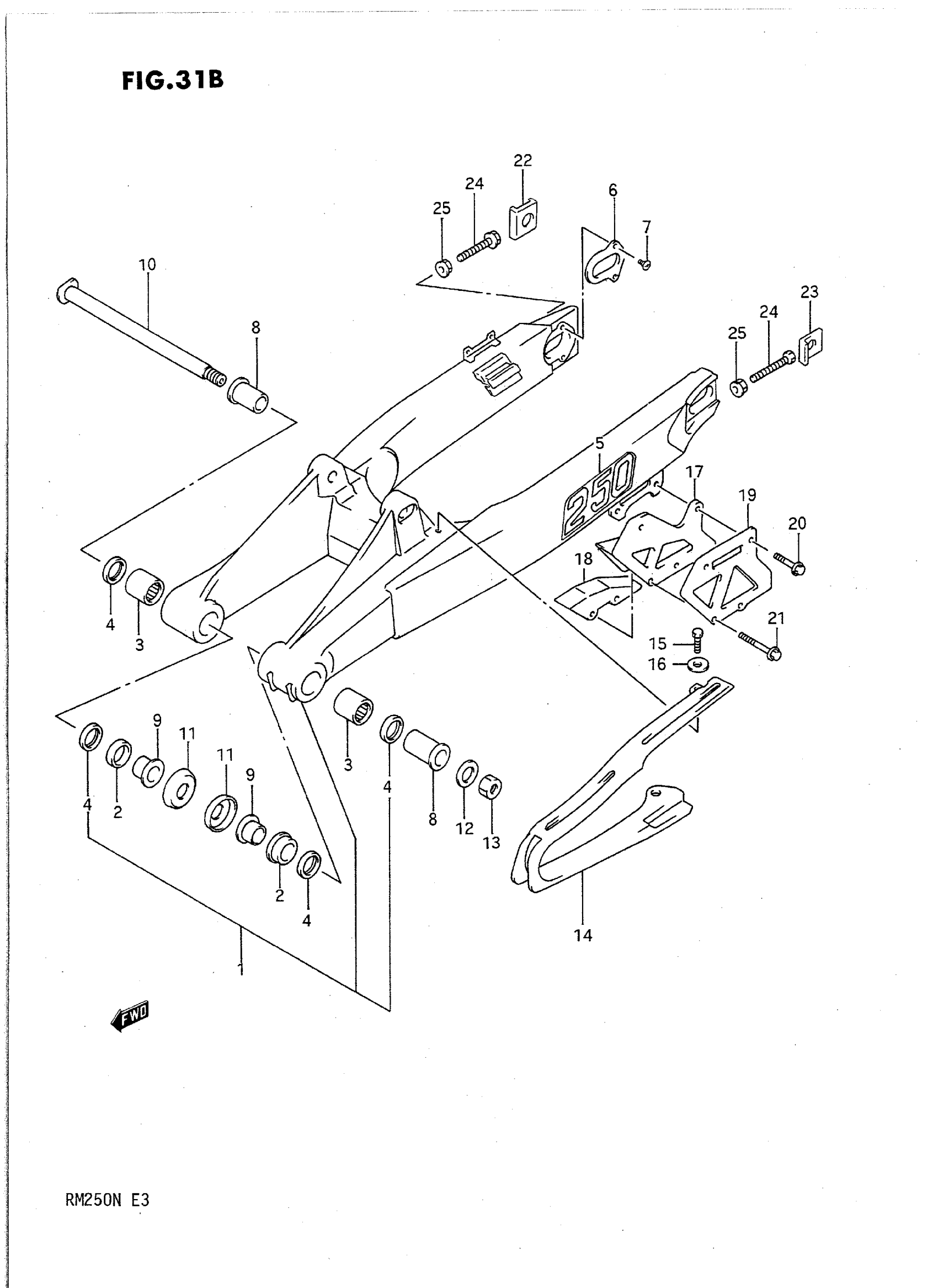 Suzuki RM250N (1992) REAR SWINGING ARM (MODEL N) Diagram