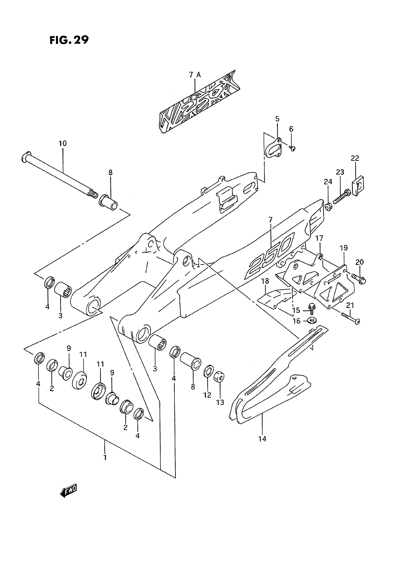 Suzuki RM250S (1995) REAR SWINGING ARM Diagram