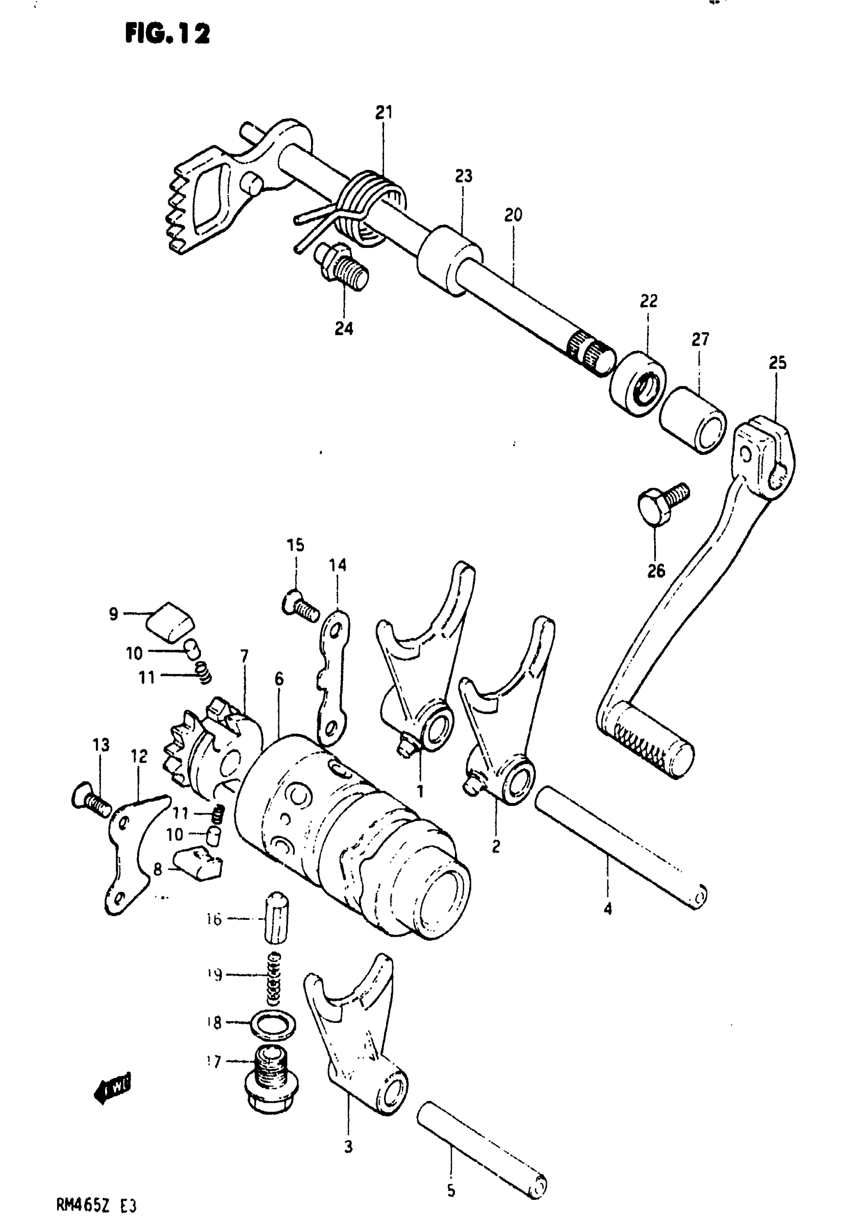 Suzuki RM465 (1982) GEAR SHIFTING (MODEL X) Diagram