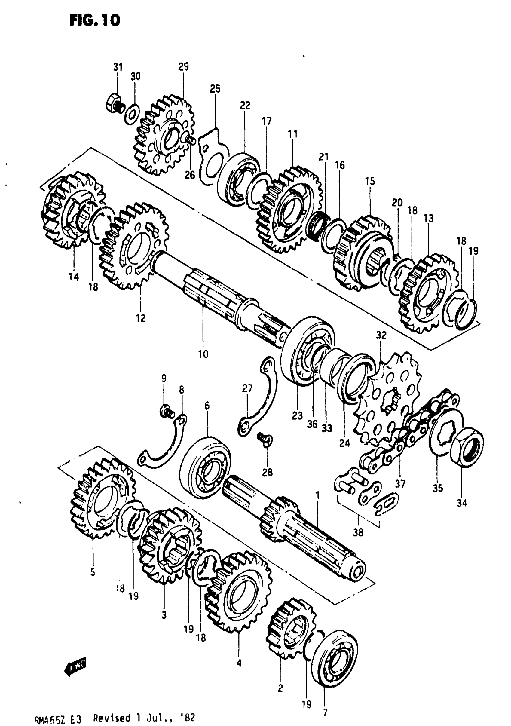 Suzuki RM465 (1982) TRANSMISSION (MODEL X) Diagram