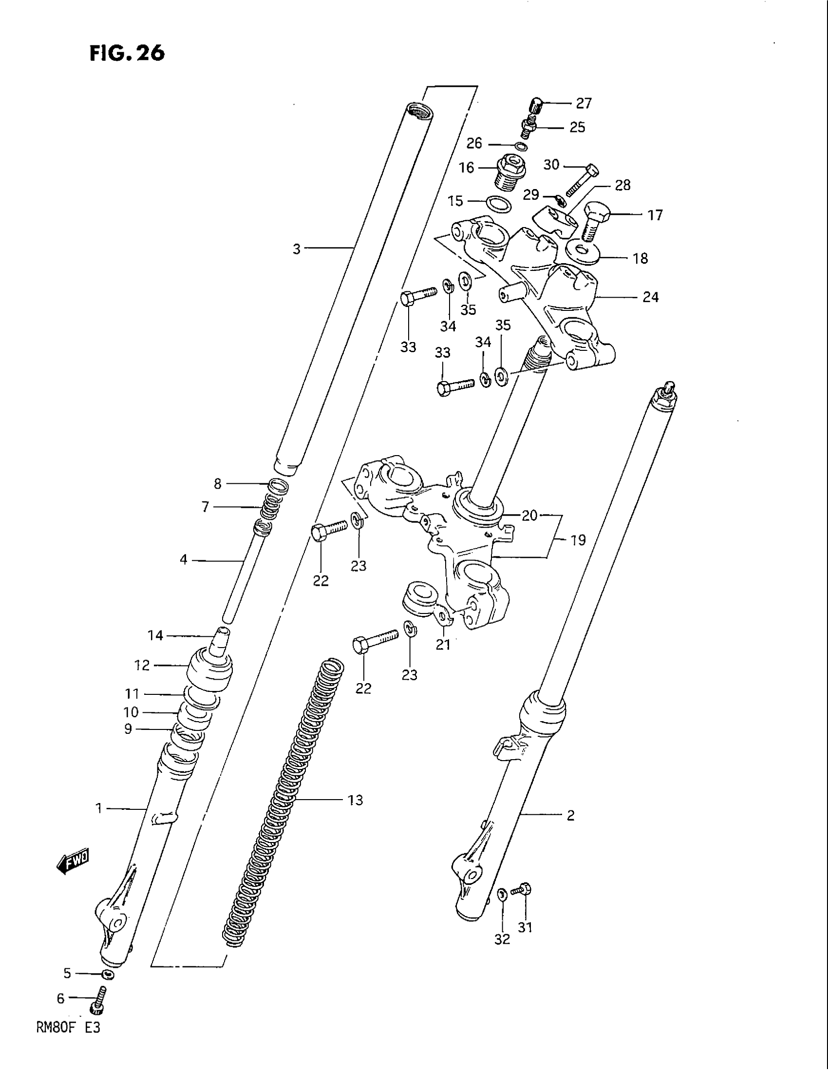 Suzuki RM80 (1985) FRONT FORK (MODEL D) Diagram