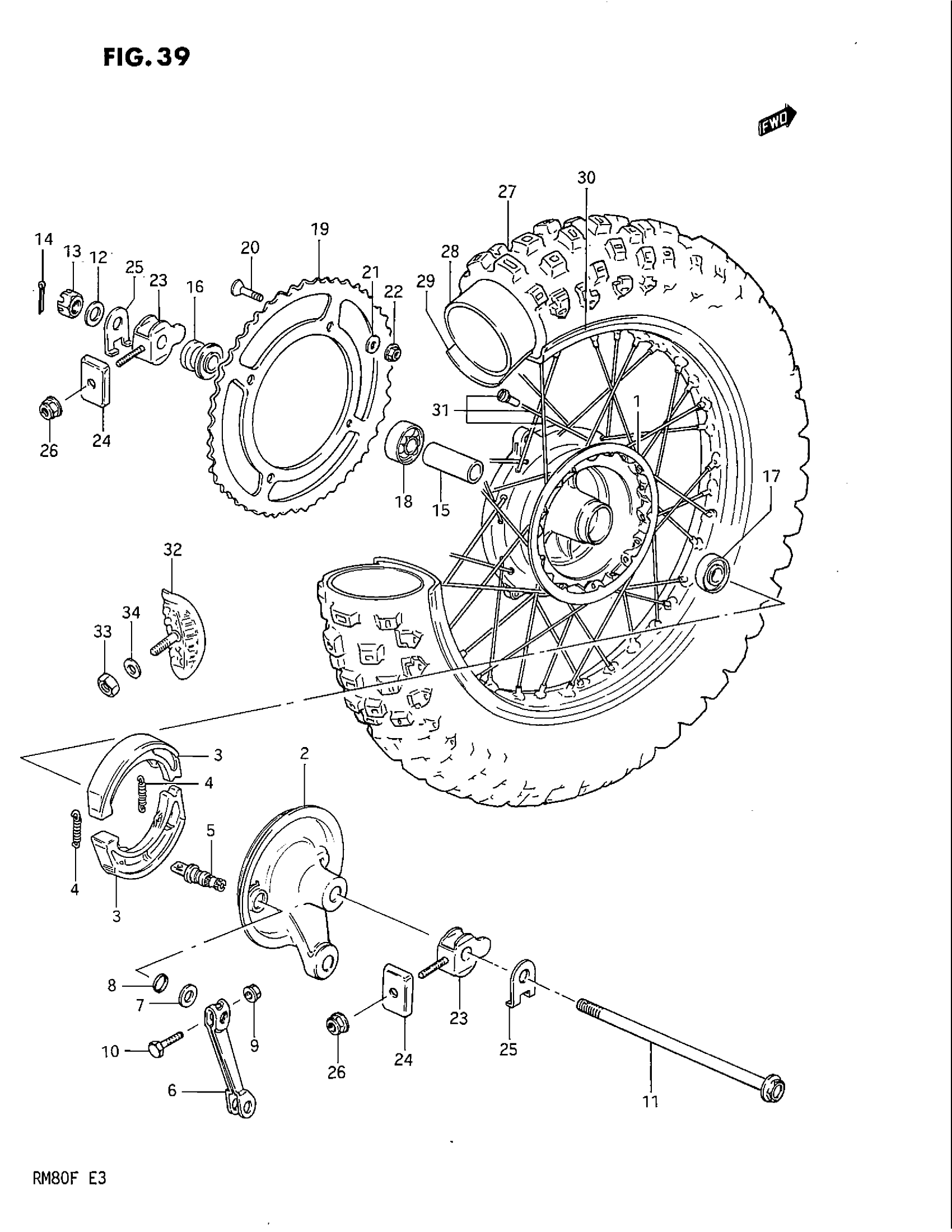 Suzuki RM80 (1985) REAR WHEEL (MODEL E/F) Diagram