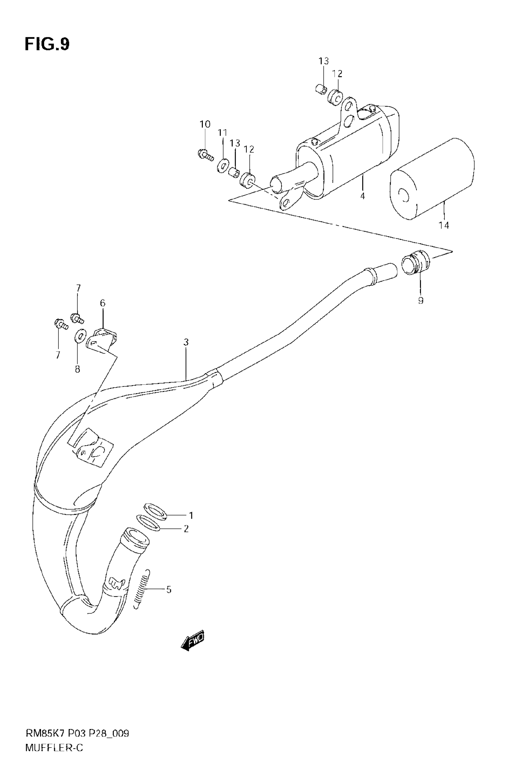 Suzuki RM85 (2008) MUFFLER Diagram