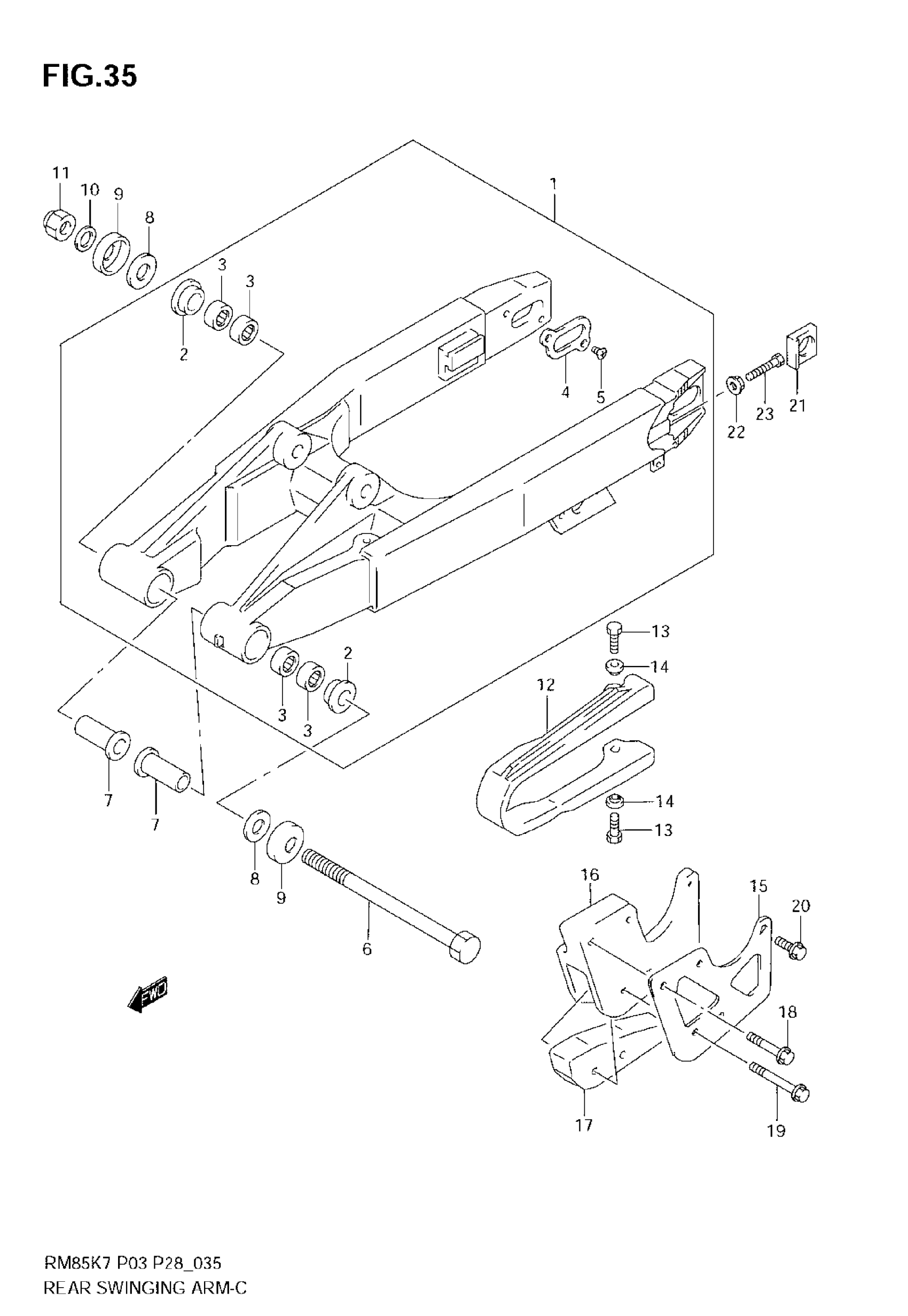 Suzuki RM85 (2008) REAR SWINGING ARM Diagram