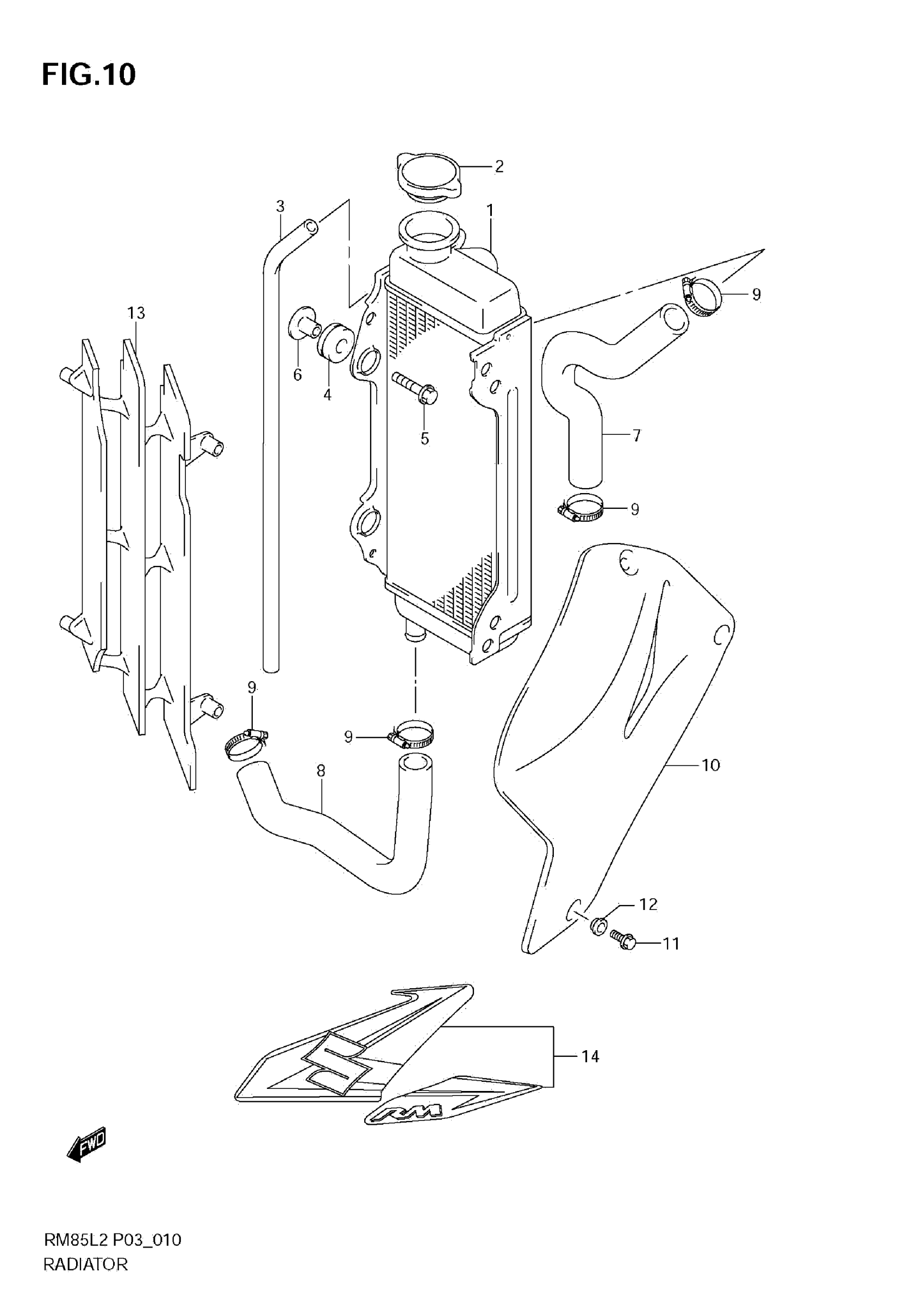 Suzuki RM85L2 (2012) RADIATOR Diagram