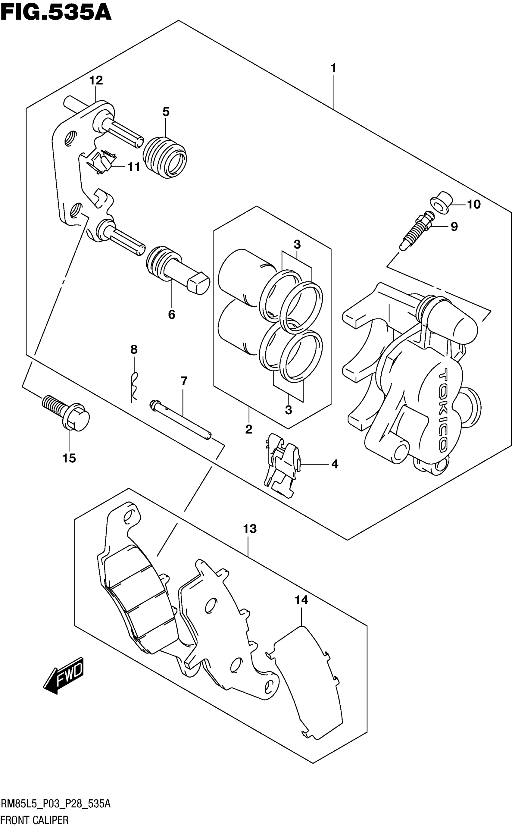Suzuki RM85L5 (2015) FRONT CALIPER Diagram