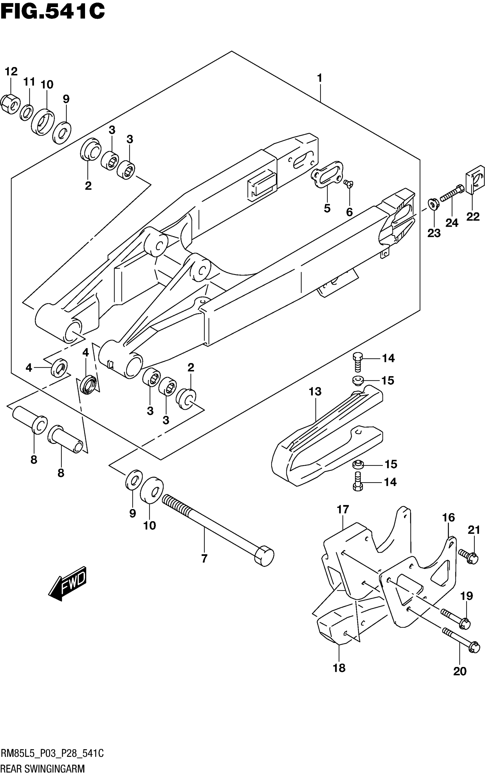 Suzuki RM85L5 (2015) REAR SWINGINGARM (RM85LL5 P28) Diagram
