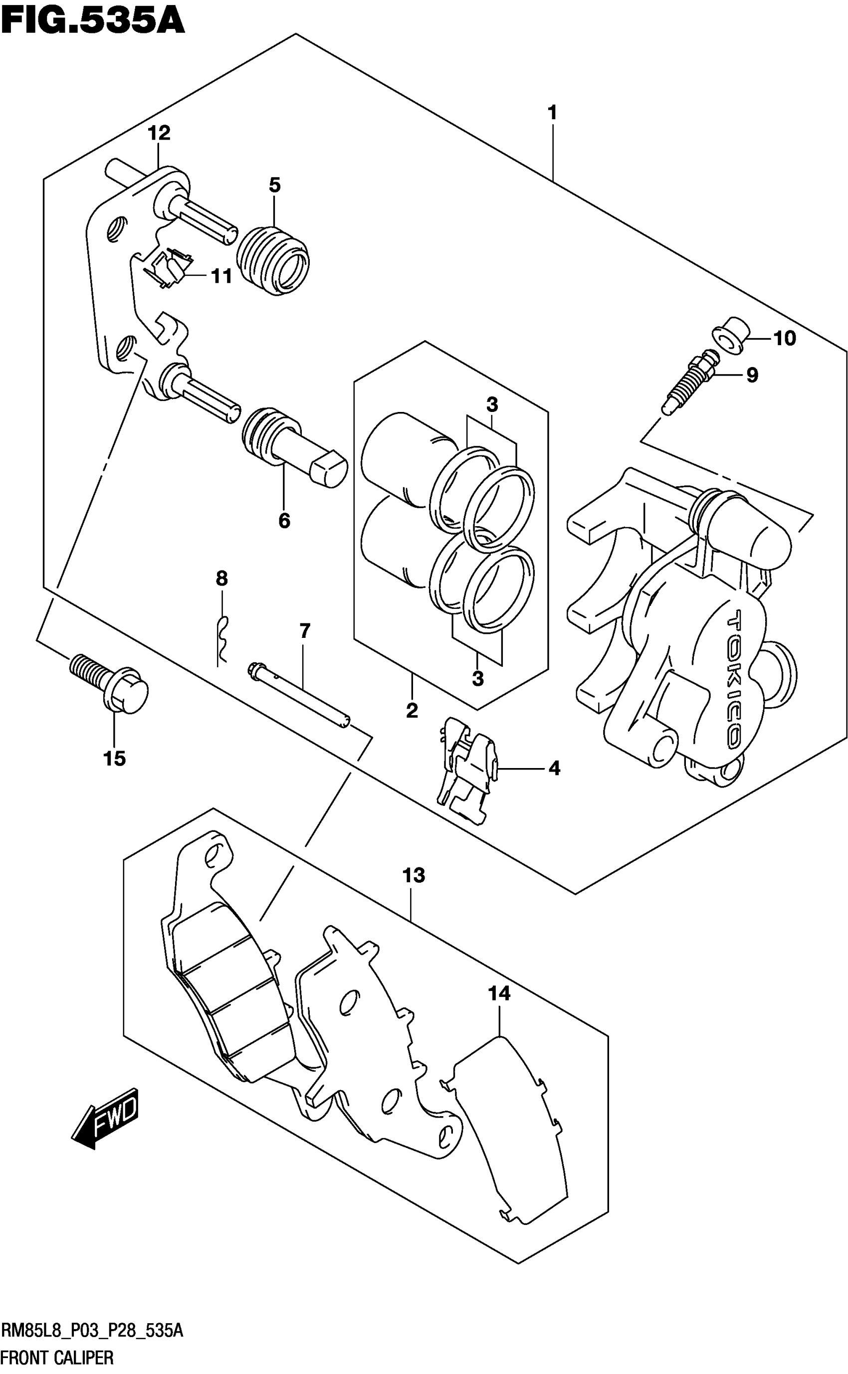 Suzuki RM85L8 (2018) FRONT CALIPER Diagram