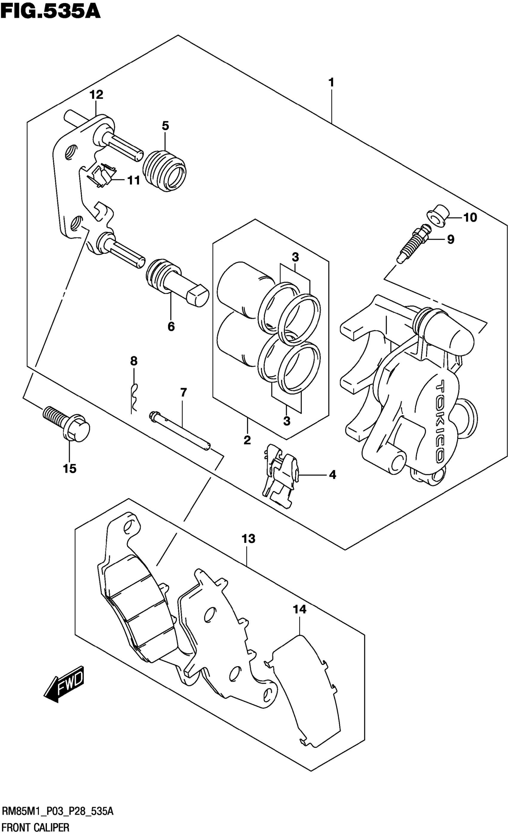 Suzuki RM85M0 (2021) FRONT CALIPER Diagram