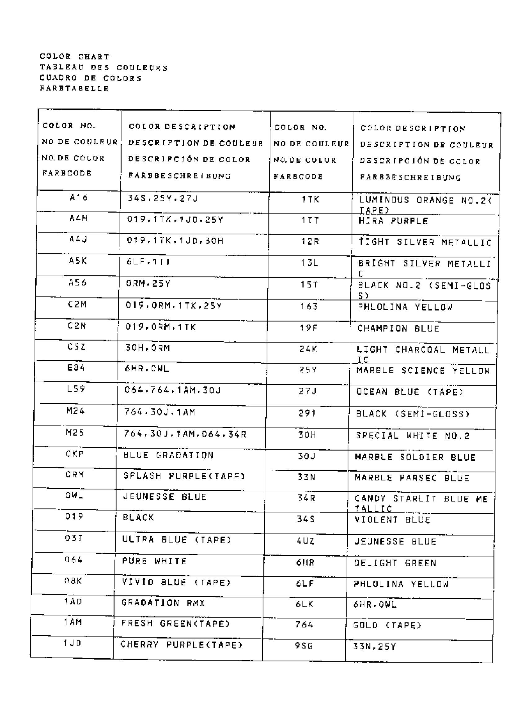 Suzuki RMX250 (1993) COLOR CHART Diagram