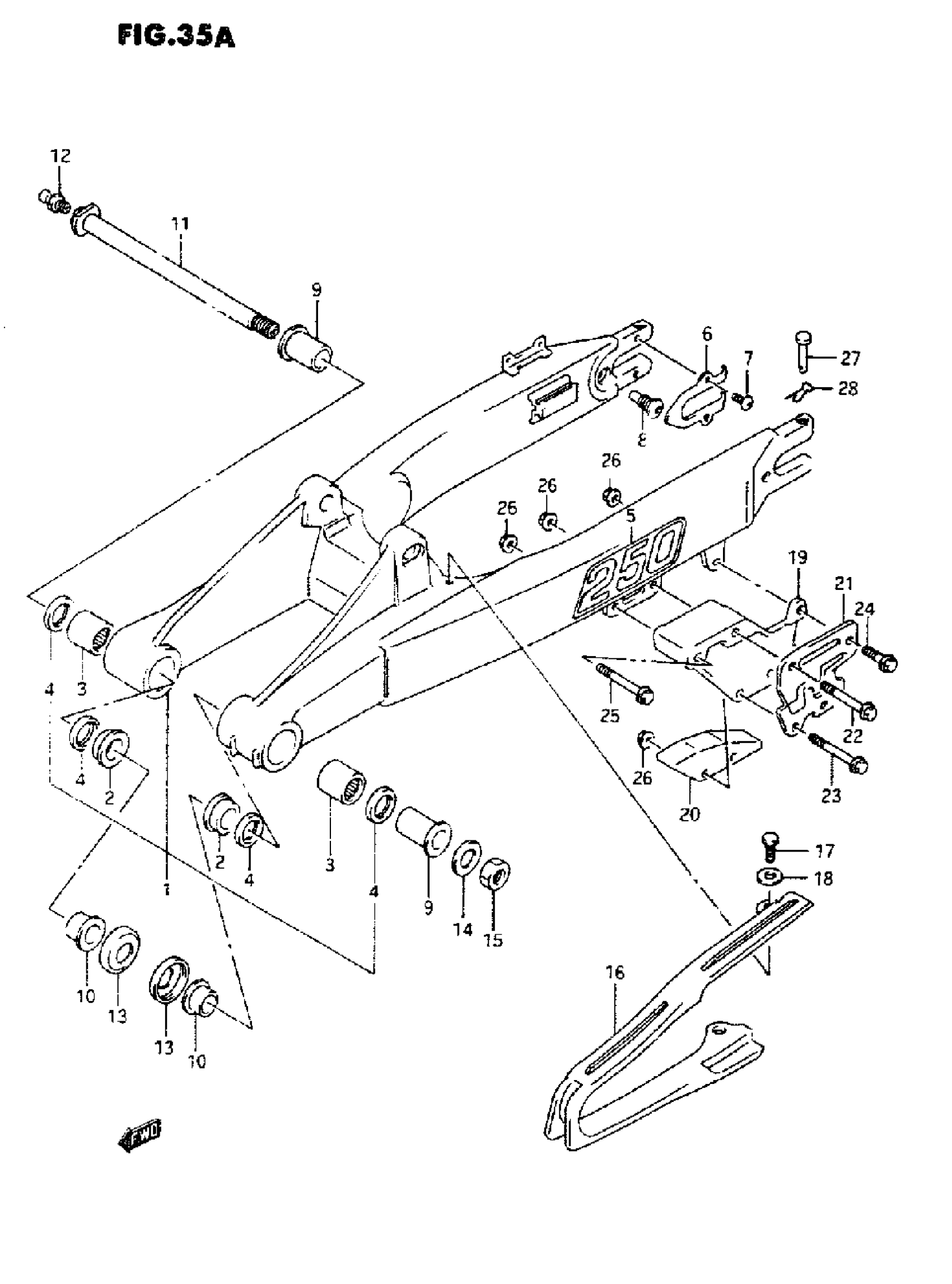 Suzuki RMX250 (1995) REAR SWINGING ARM (MODEL M/N) Diagram