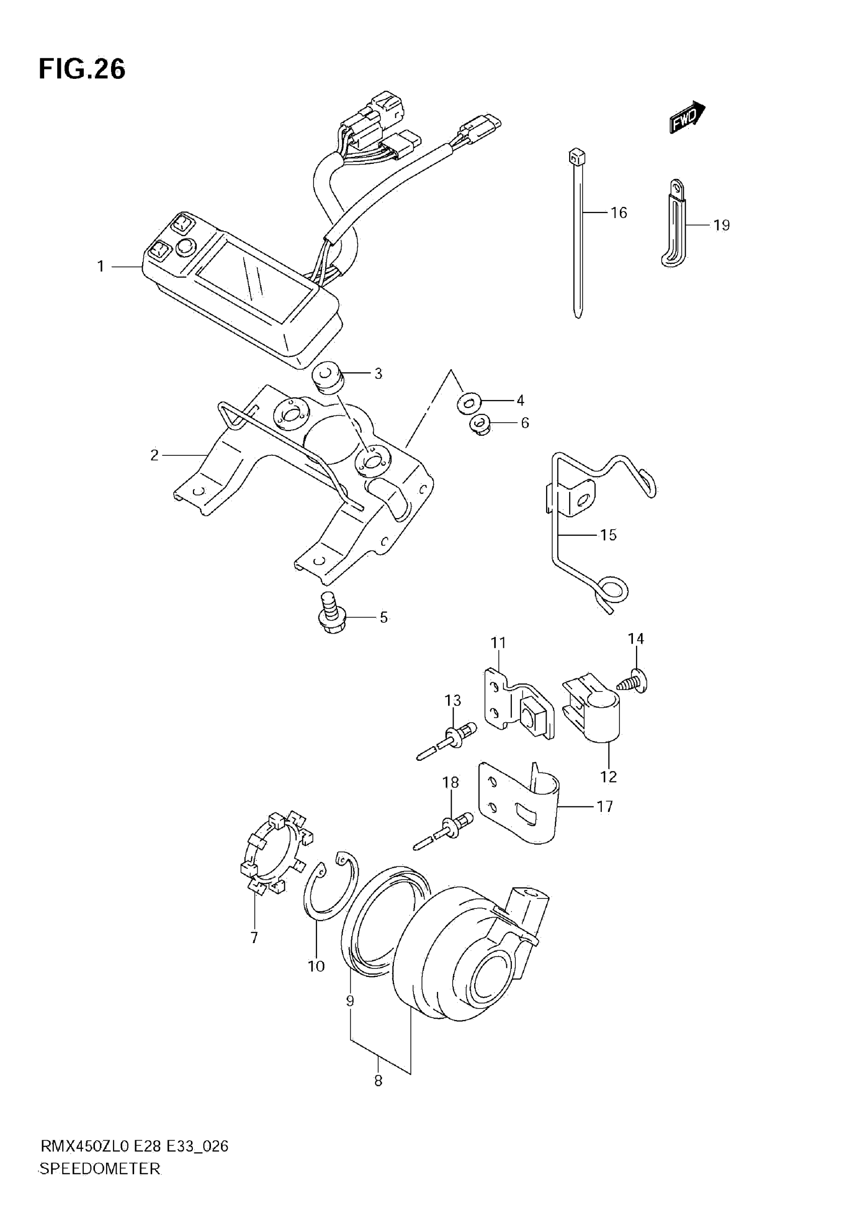 Suzuki RMX450ZL0 (2010) SPEEDOMETER (E28) Diagram