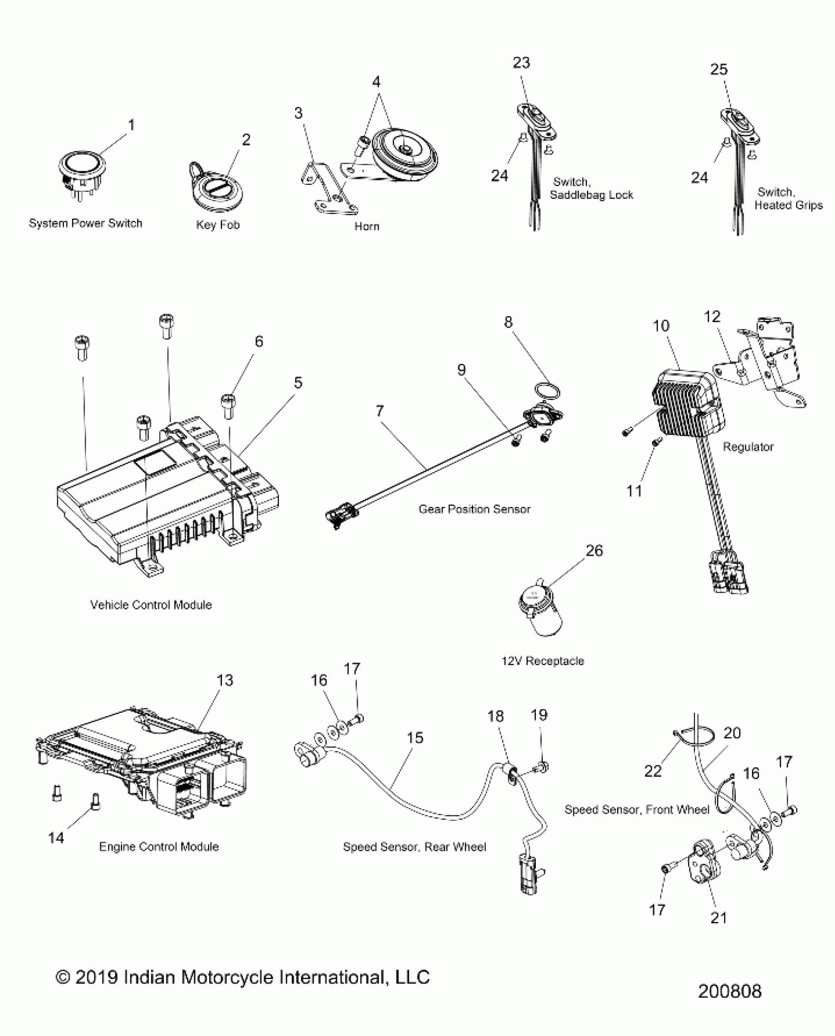 Polaris ROADMASTER DARK HORSE ALL OPTIONS (R06) - N20TKDBBAH/R/W/BH/R/W/CH/R/W/EH/R/W ELECTRICAL, COMPONENTS 1 - N20TKDBB ALL OPTIONS (200808) Diagram