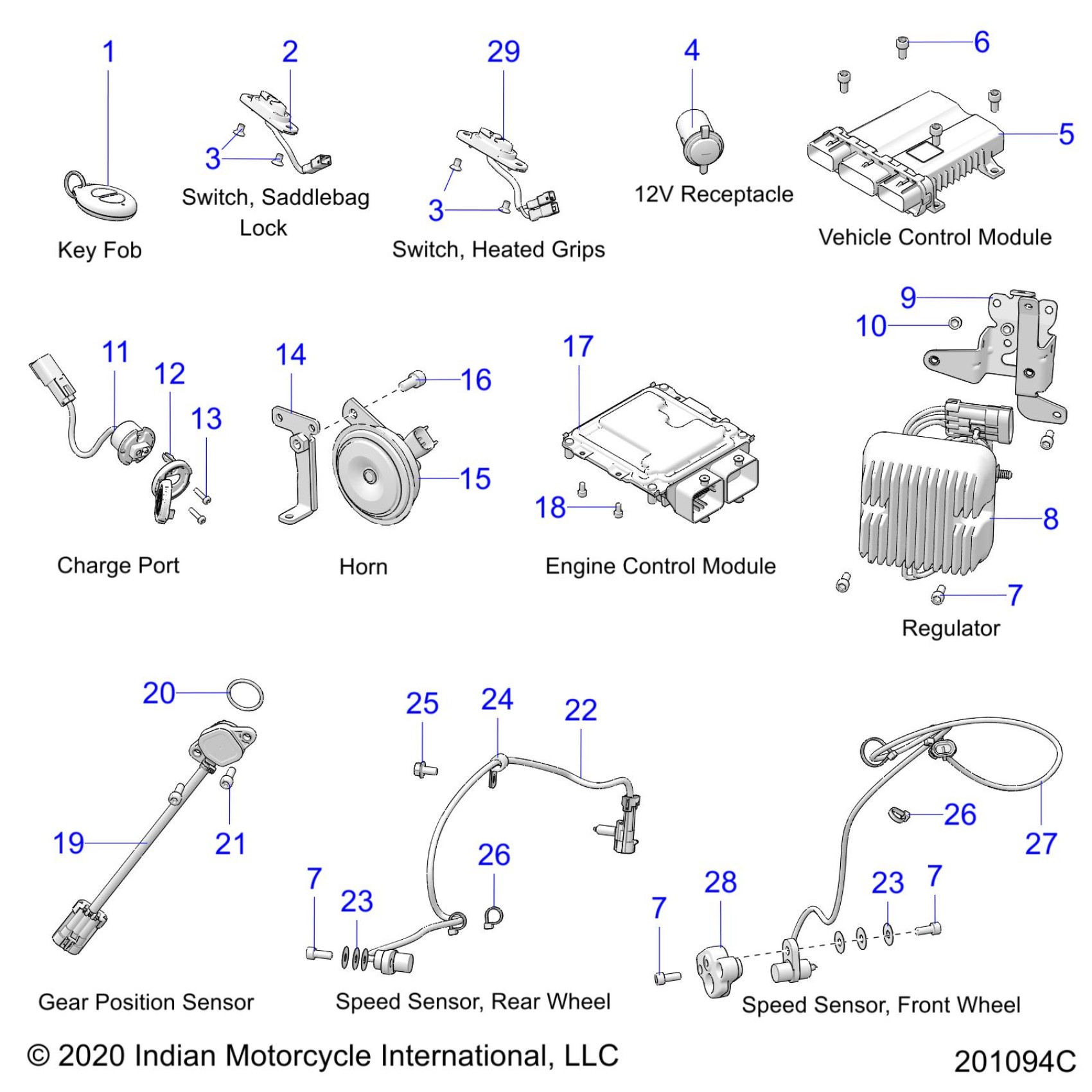 Polaris ROADMASTER DARK HORSE (R02) - N22TDKBBAH/P/R/BH/P/R/CH/P/R/EH/P/R ELECTRICAL, COMPONENTS 1 - N22TKDBB ALL OPTIONS (201094C) Diagram