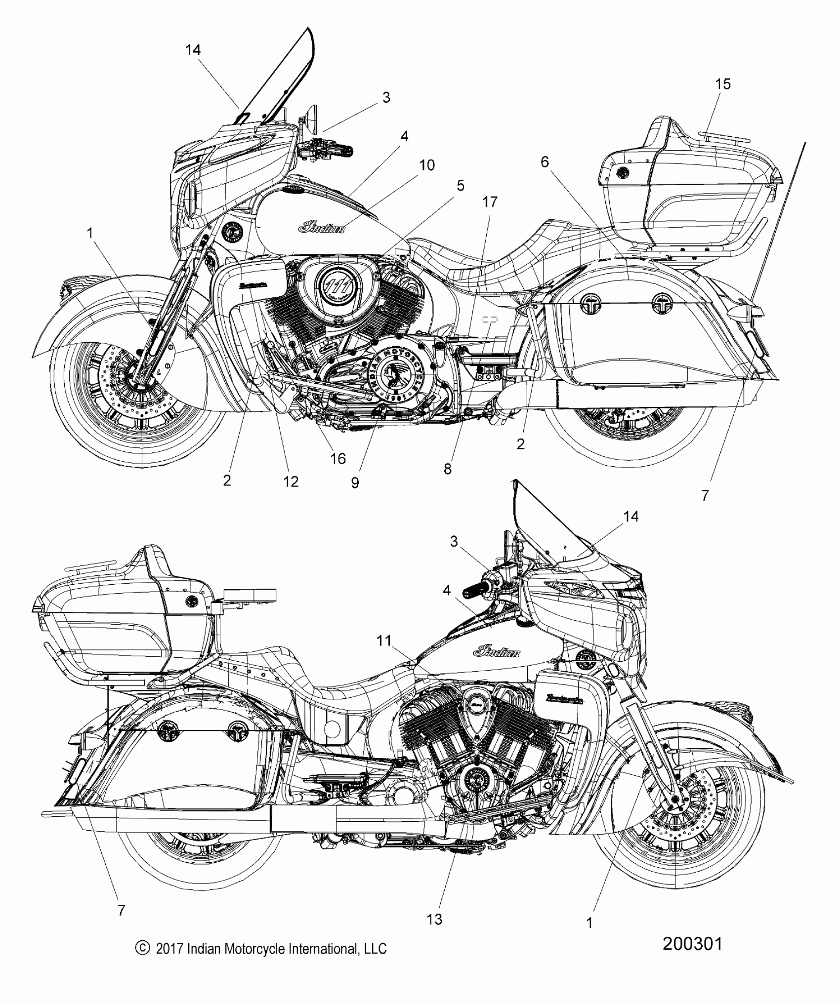 Polaris ROADMASTER/ELITE ALL OPTIONS (R07) - N18TRA/TRE BODY, DECALS - N18TRAAA/TREAA ALL OPTIONS (200301) Diagram