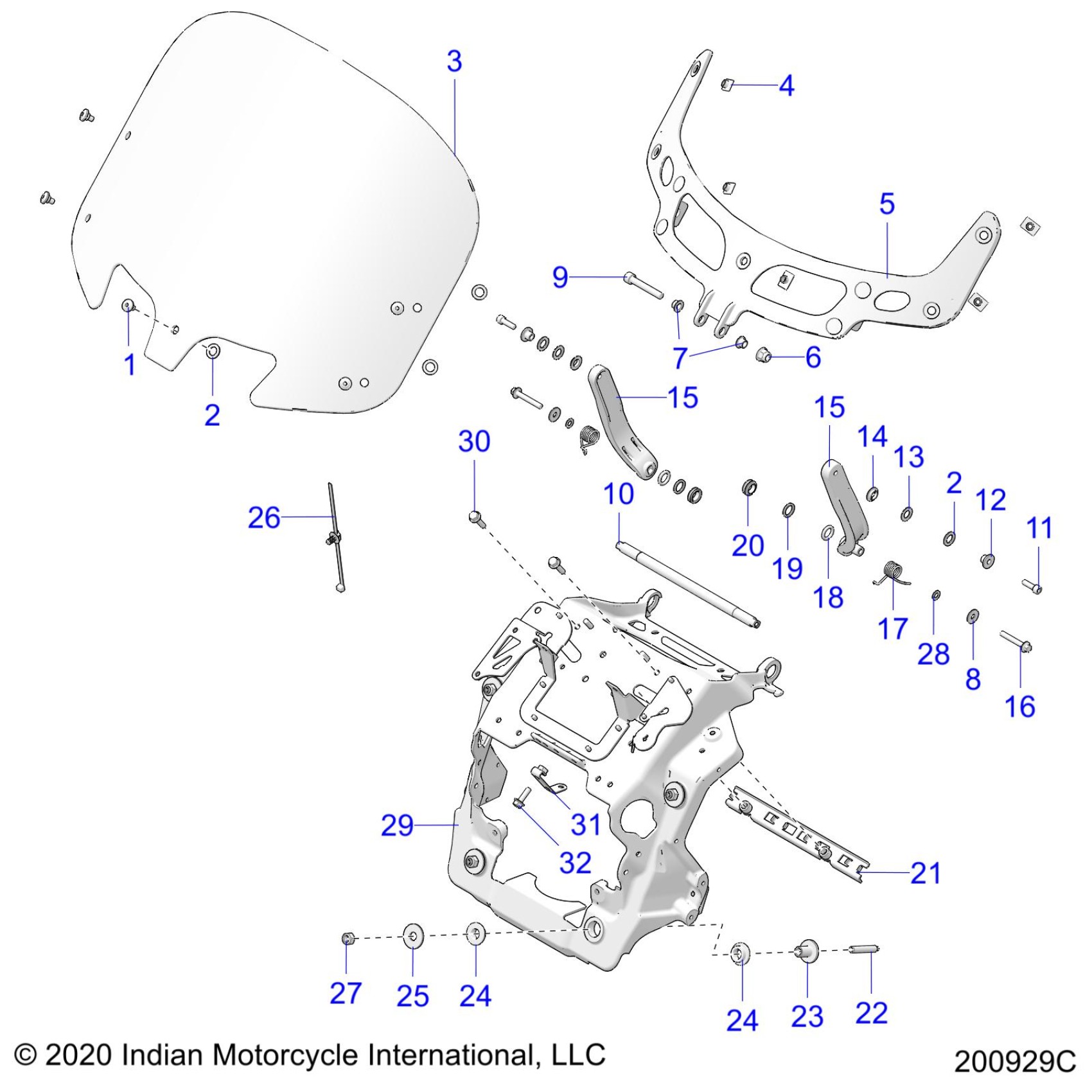 Polaris ROADMASTER PREMIUM ALL OPTIONS (R04) - N20TRABBA1/2/3/5/6/9/A/V/B1/2/3/5/6/9/A/V/C1/2/3/5/6/9/A/V/E1/2/3/5/6/9/A/V BODY, FAIRING ASM, WINDSHIELD MOUNT - N20TRABB ALL OPTIONS (200929C) Diagram