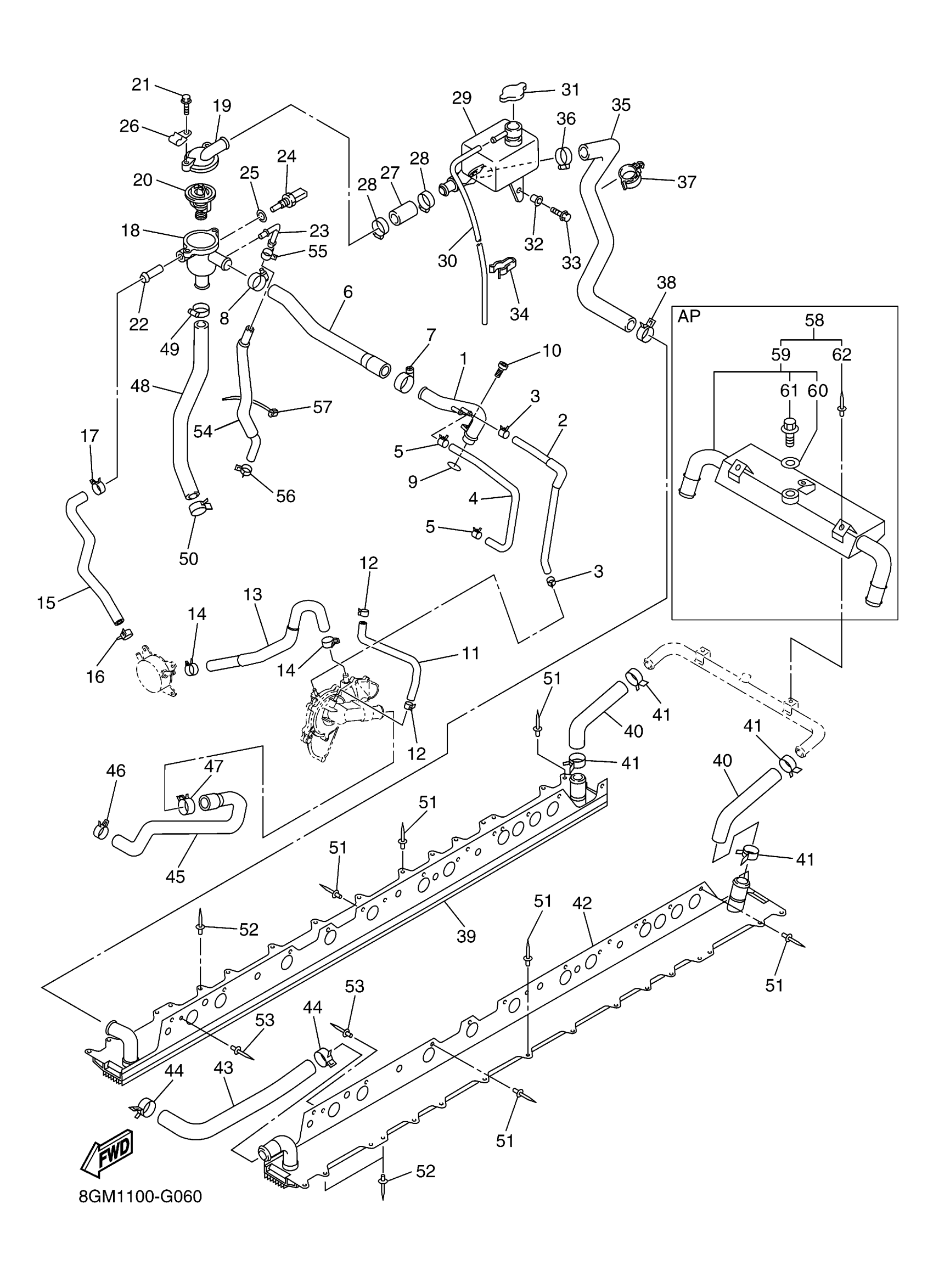 Yamaha RS90GTAXW (RS VECTOR GT 40TH ANNIVERSARY) 8HC3 2008 RADIATOR HOSE Diagram