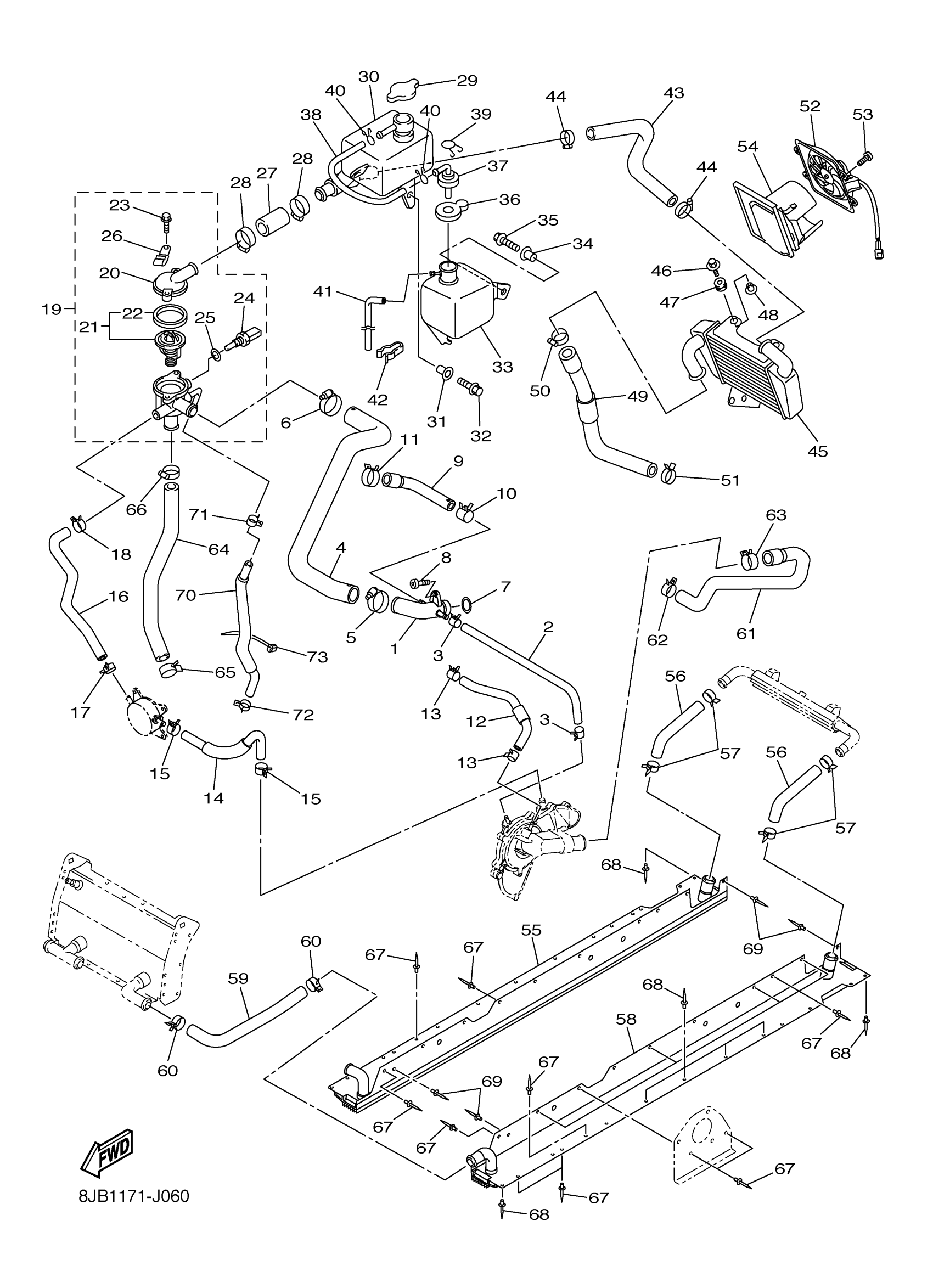 Yamaha RS90LTGTZW (RS VECTOR LTX GT) 8JB10 2010 RADIATOR HOSE Diagram