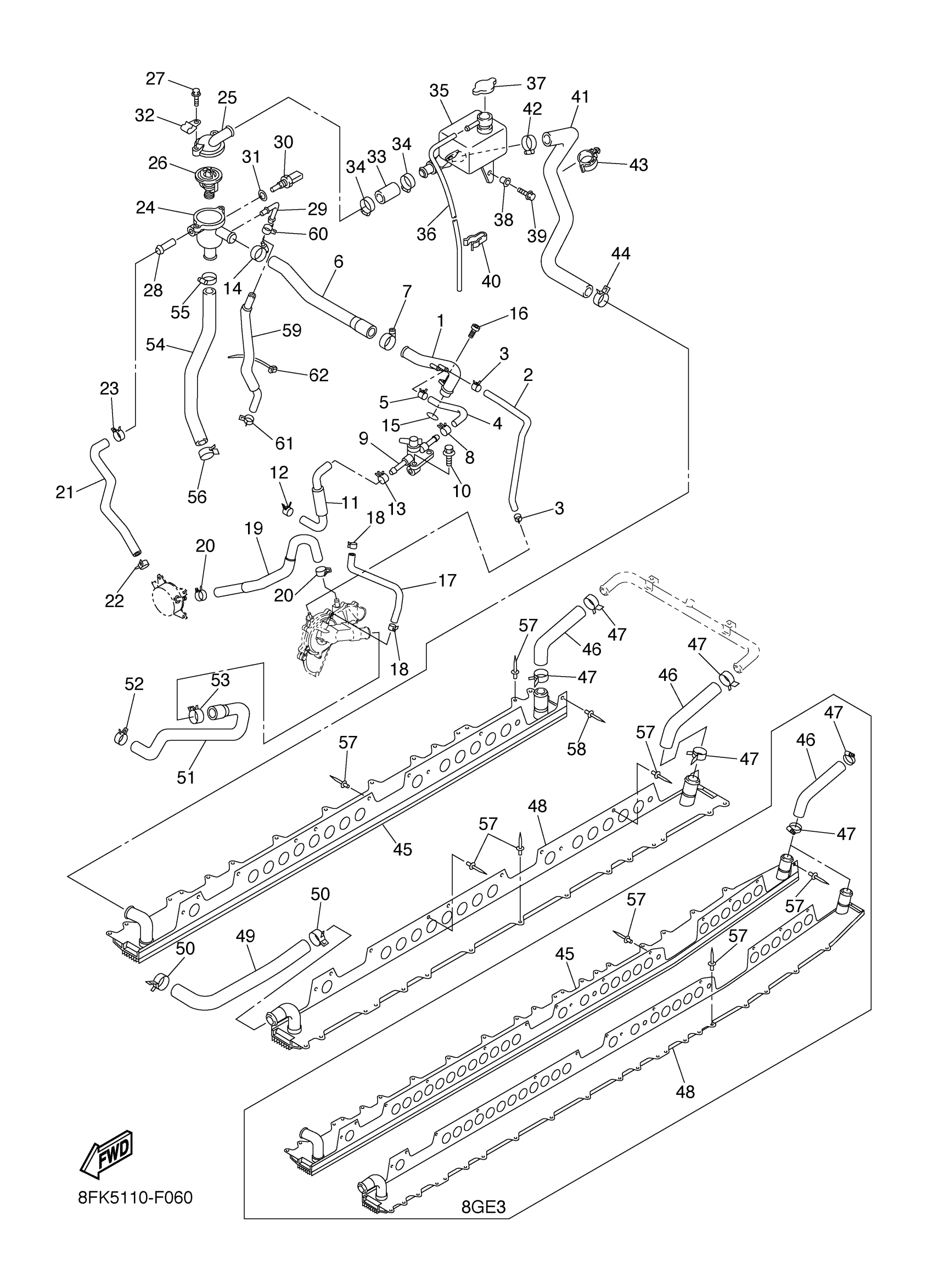 Yamaha RS90MW (VECTOR MOUNTAIN) 8FK5 2007 RADIATOR HOSE Diagram