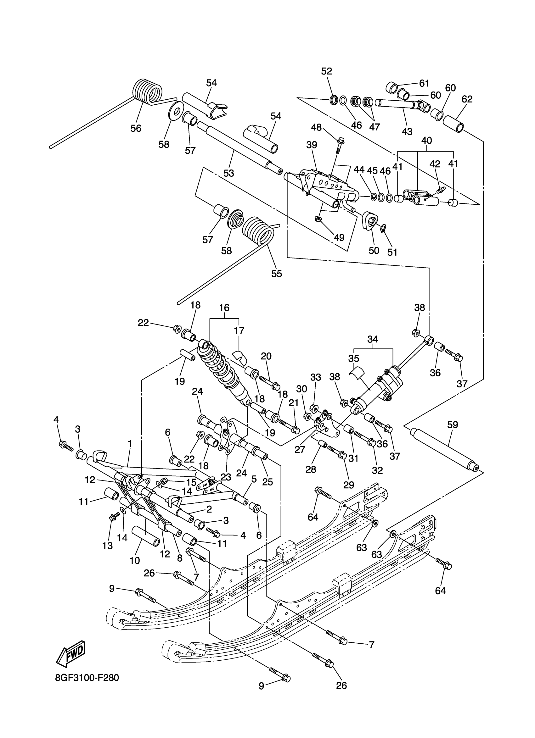 Yamaha RS90NW (NYTRO) 8GF3 2007 TRACK SUSPENSION 2 Diagram