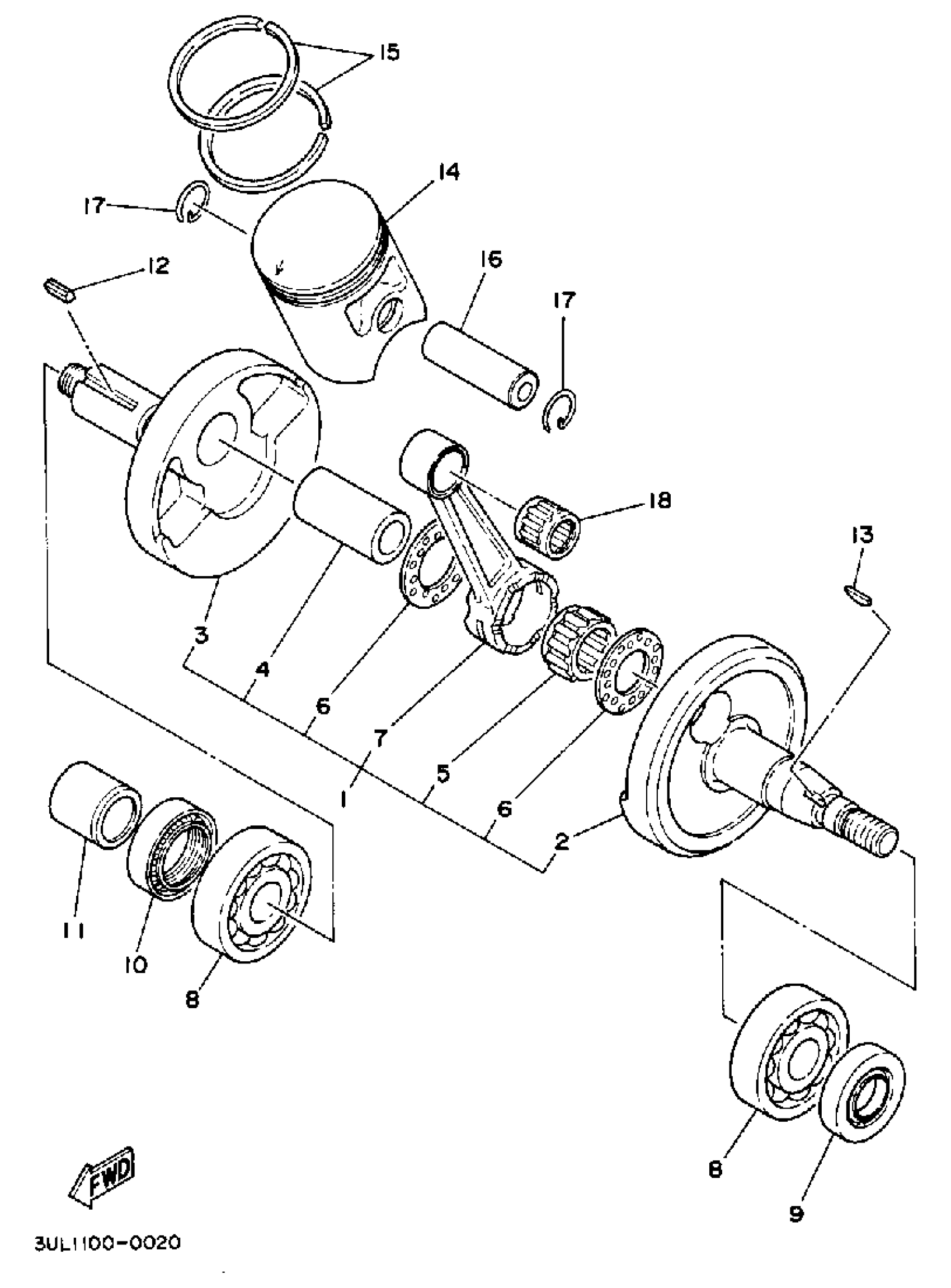 Yamaha RT100A (RT100) 3UL1 1990 CRANKSHAFT - PISTON Diagram
