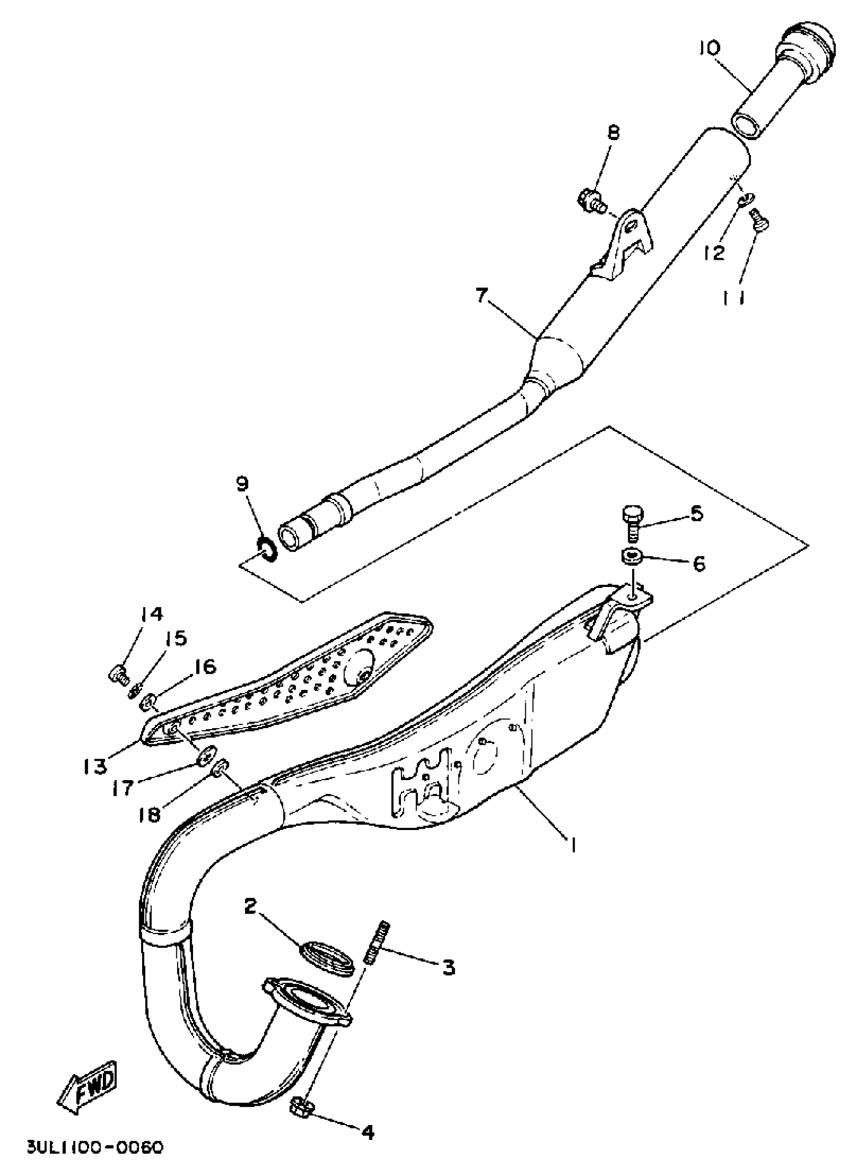 Yamaha RT100A (RT100) 3UL1 1990 EXHAUST Diagram