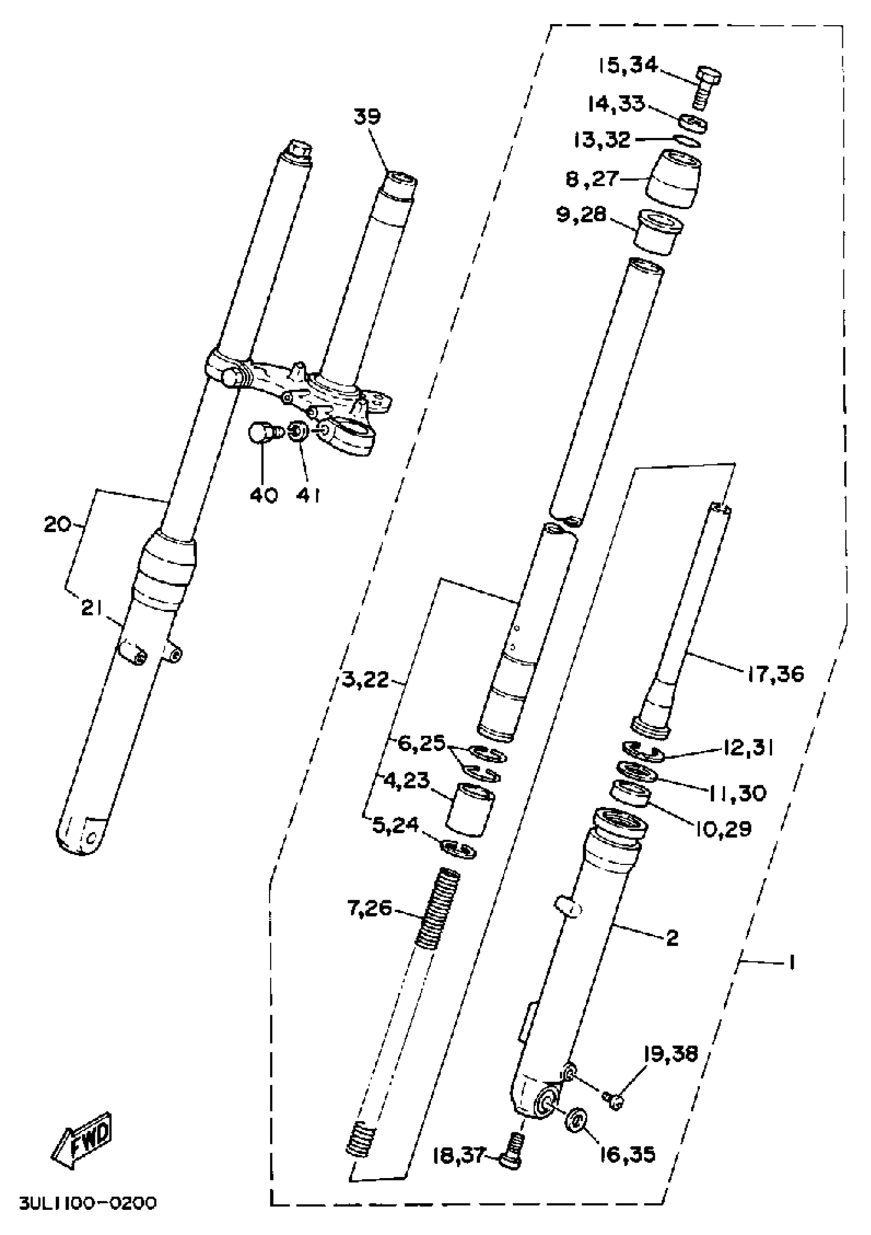Yamaha RT100A (RT100) 3UL1 1990 FRONT FORK Diagram