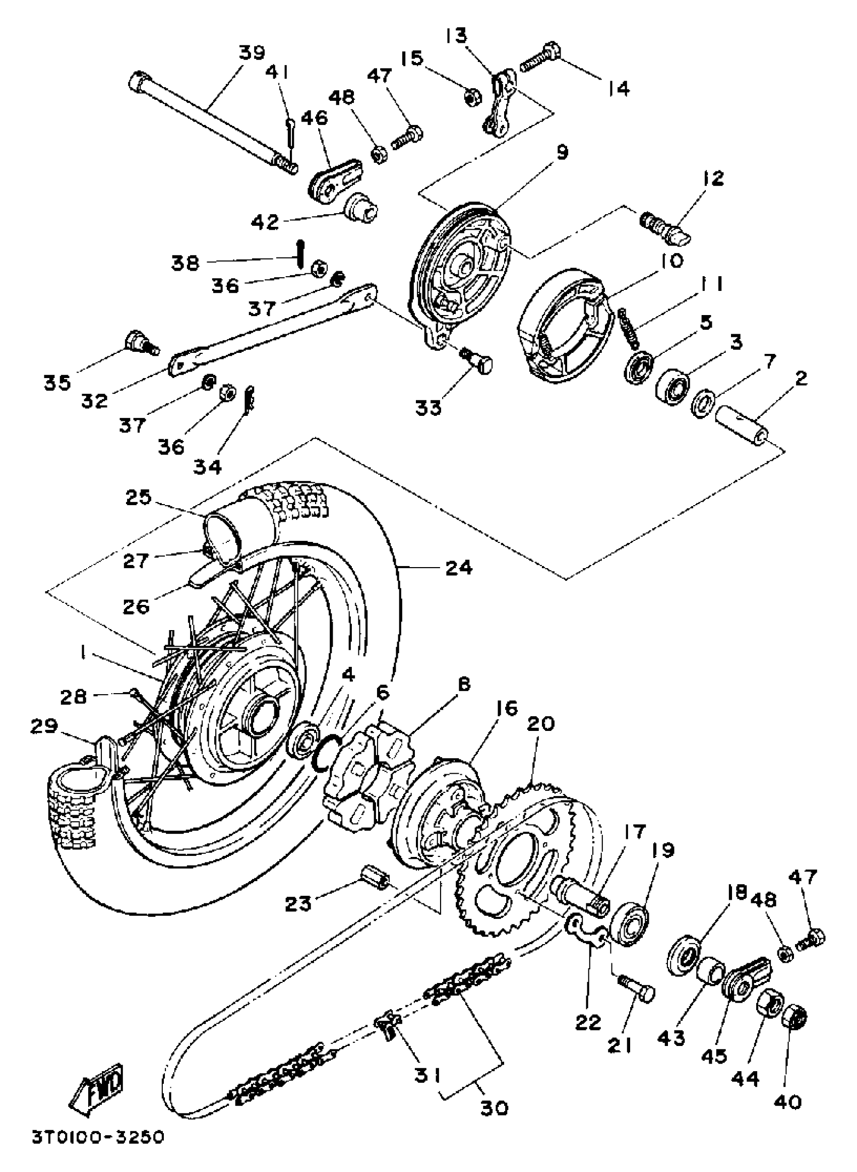 Yamaha RT100A (RT100) 3UL1 1990 REAR WHEEL Diagram