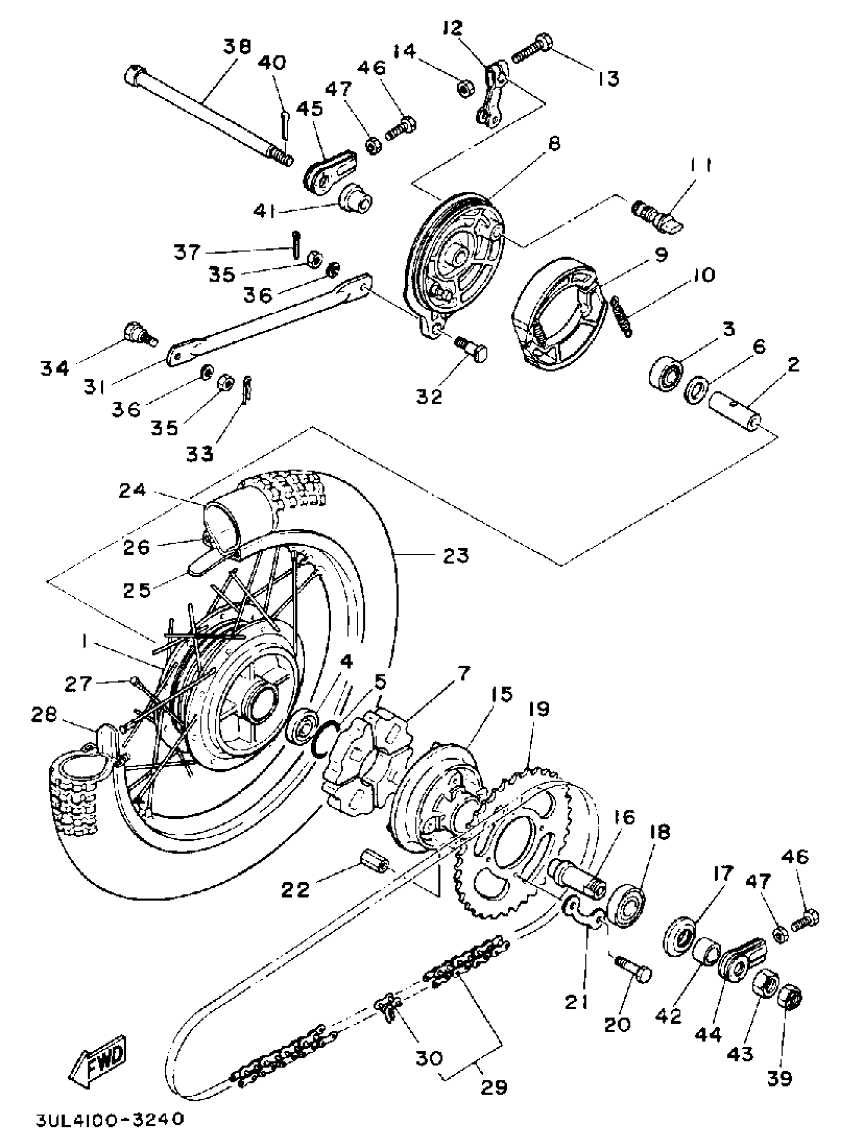 Yamaha RT100E (RT100) 1993 REAR WHEEL Diagram