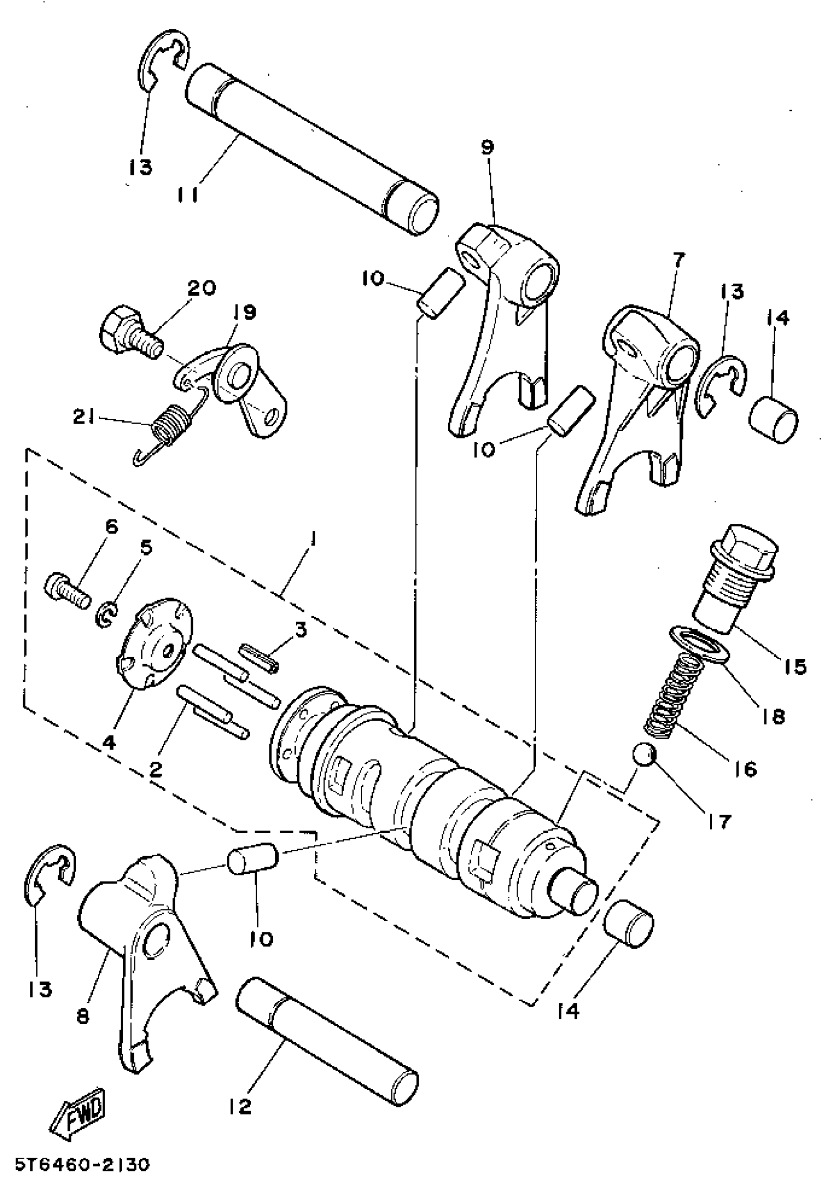 Yamaha RT100G (RT100) 1995 SHIFT CAM - SHIFT FORK Diagram
