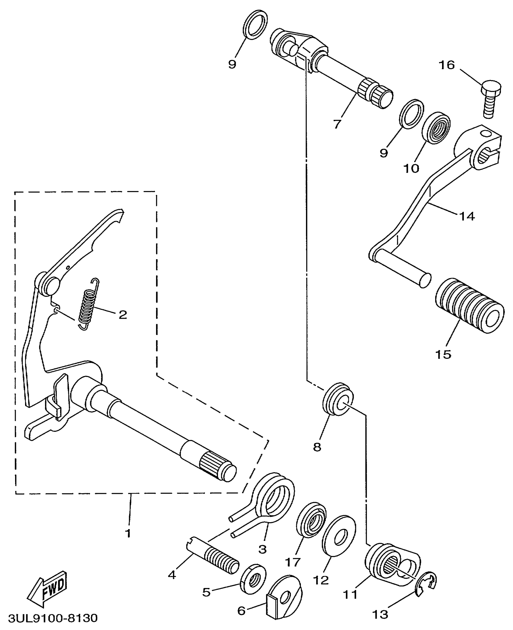 Yamaha RT100L (RT100) 3ULA 1999 SHIFT SHAFT Diagram
