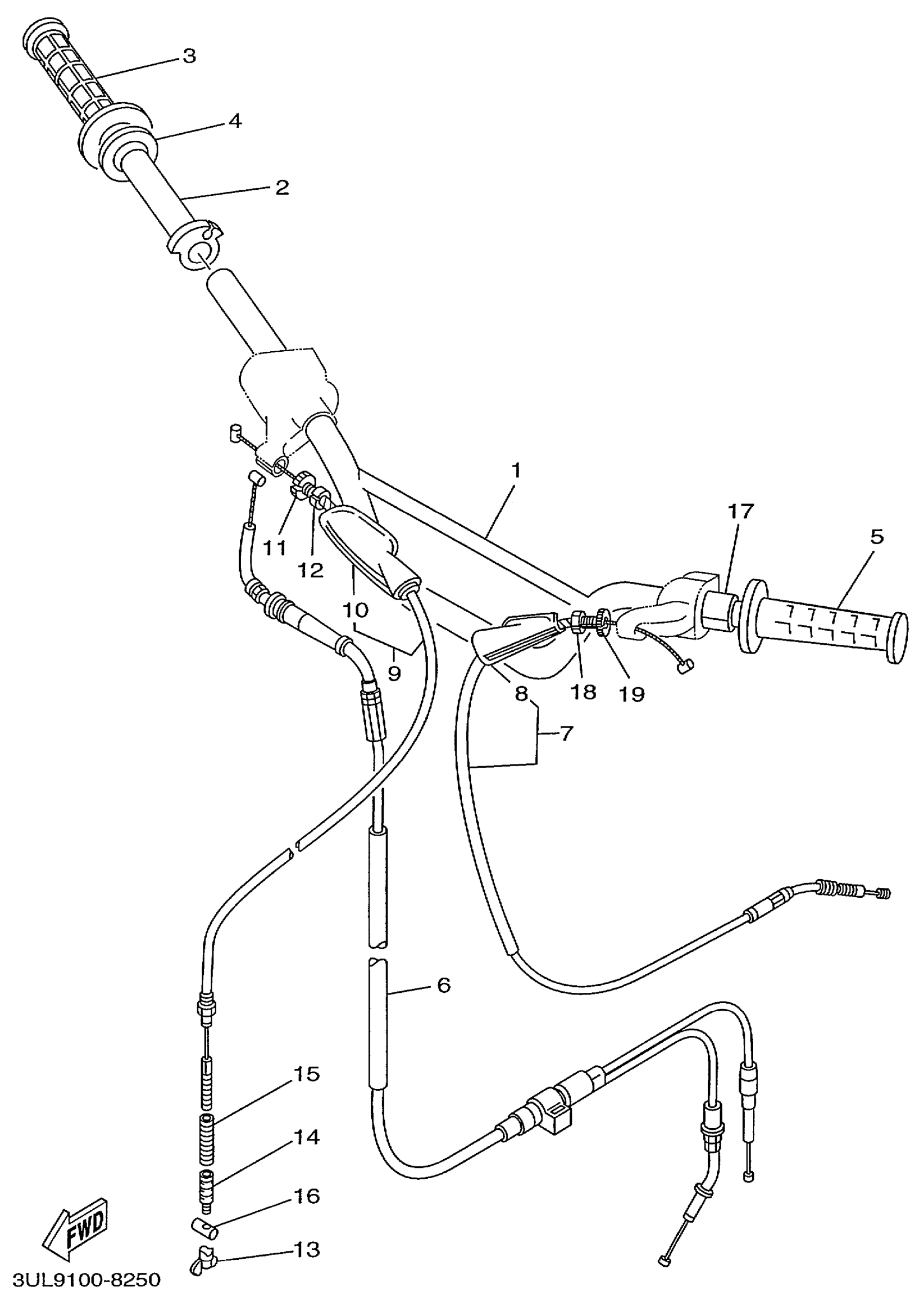 Yamaha RT100L (RT100) 3ULA 1999 STEERING HANDLE CABLE Diagram