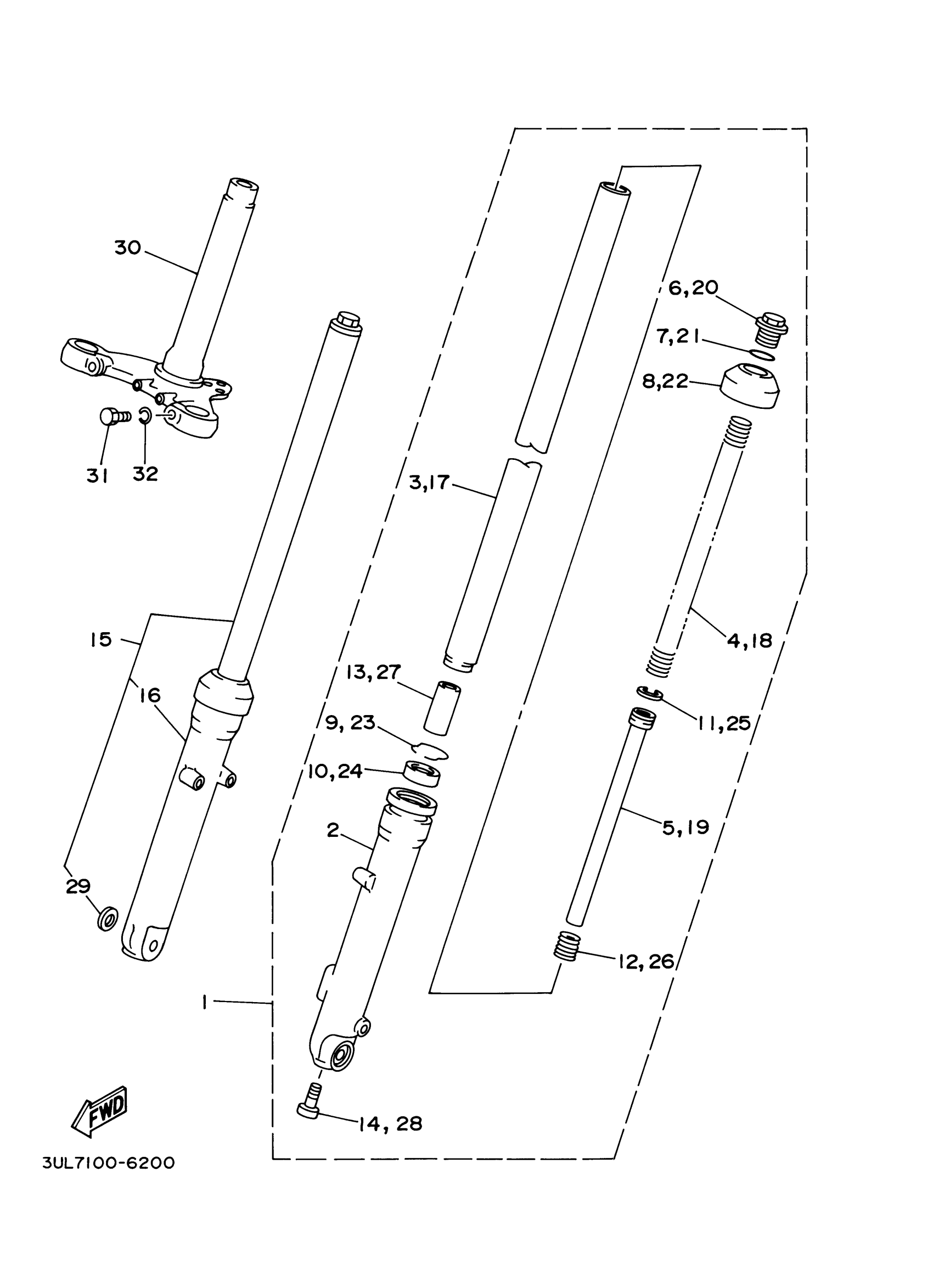Yamaha RT100M (RT100) 3ULB 2000 FRONT FORK Diagram