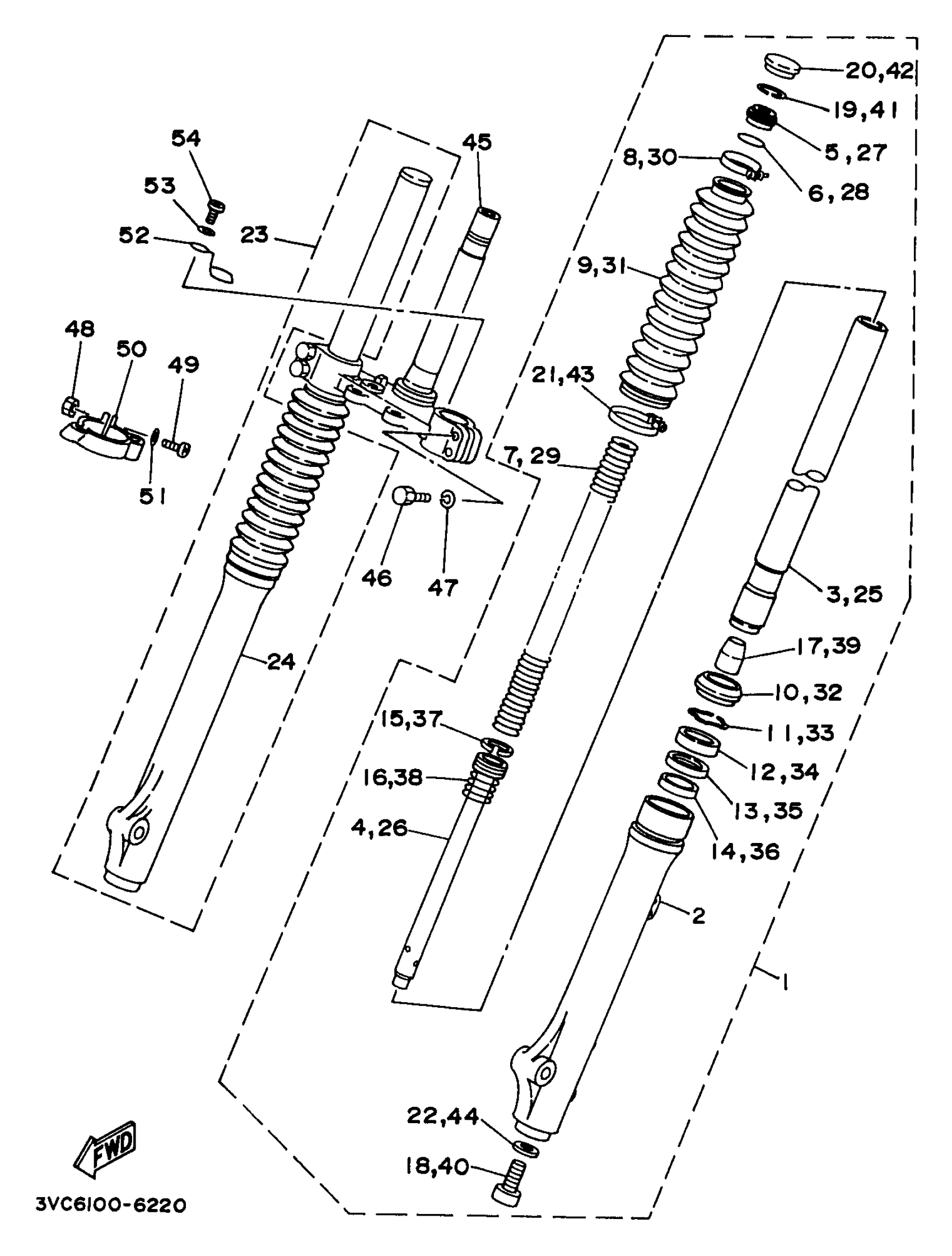 Yamaha RT180J (RT180) 1997 FRONT FORK Diagram