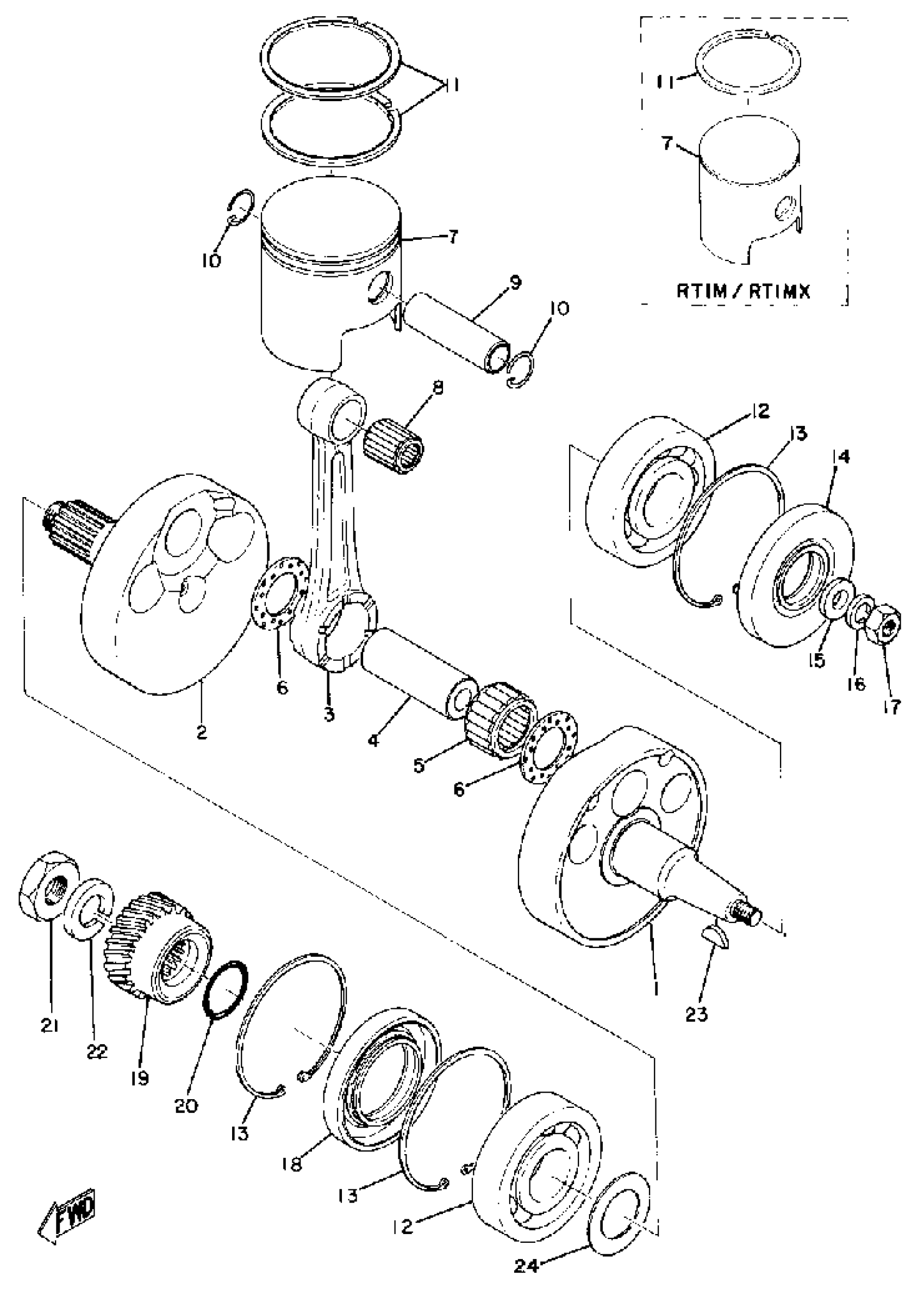 Yamaha RT1M (RT1) 1970 CRANK & PISTON Diagram