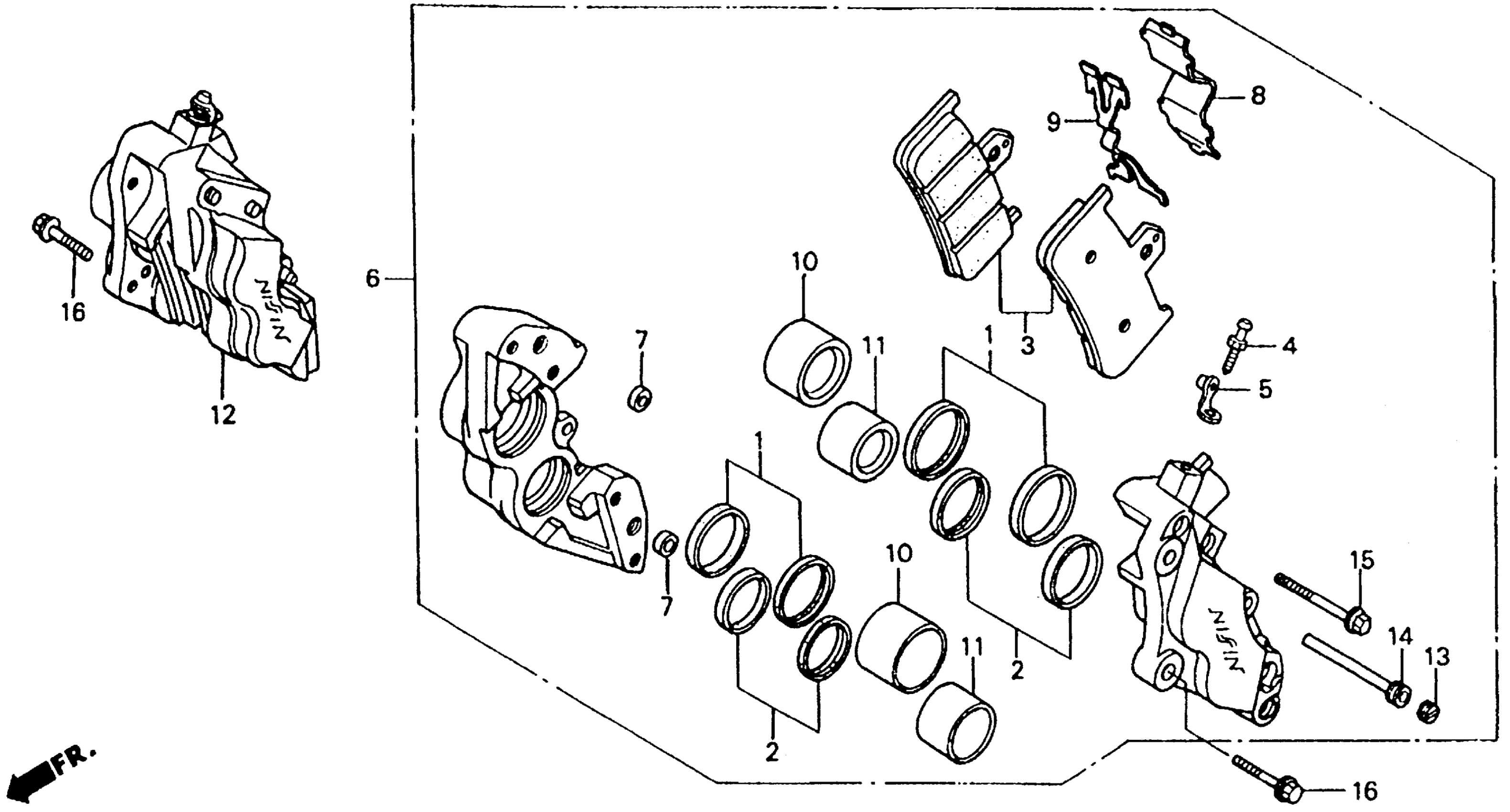 Honda RVF750RA (94) RC45, JPN, VIN# JH2RC450-RM000006 FRONT BRAKE CALIPER Diagram